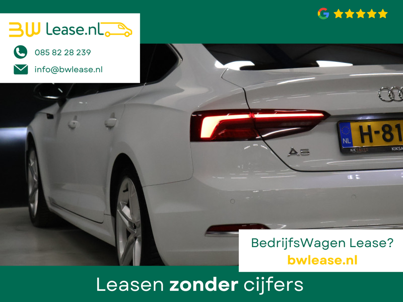 Superieure techniek, innovatie van de bovenste plank en ongekende topprestaties: dat is wat u van een Duitse auto mag verwachten. Deze auto wíl gewoon gezien worden: kijk maar naar de sportieve S-Line styling. De aandrijving komt voor rekening van een benzinemotor en een automatische transmissie. Lekker hoor, die verwarmbare voorstoelen. Helemaal op koude dagen. In deze uitvoering is de A5 Sportback voorzien van mooie, maar ook functionele sportstoelen. Dankzij het elektrisch bediende glazen panoramadak lijkt het of u altijd met open dak rijdt. De bagageruimte is toegankelijk via een comfortverhogende elektrische achterklep. Bij de rijke uitrusting horen ook lichtmetalen velgen, LED koplampen, halflederen bekleding, warmtewerend glas, in delen neerklapbare achterbank en LED-achterlichten.