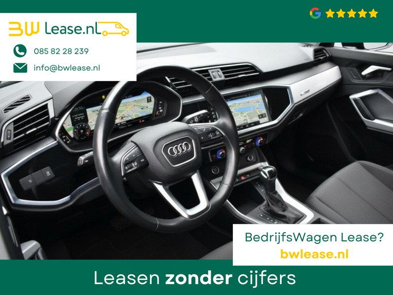 Deze Audi Q3 is een 35 TFSI en heeft een S-tronic automaat voor perfecte rijeigenschappen en is compleet met vele opties en extra`s o.a.: Origineel navigatiesysteem/multimedia/bluetooth, audi connect, Volledig digitale cockpit, boordcomputer, sport/comfort stoelen incl. stoelverwarming, volautomatische Climate-control airconditioning, multifunctioneel leder sportstuur, rijstrook sensor, cruise-control, LED dagrij-verlichting met LED Koplampen, parkeersensoren voor en achter, lichtmetalen velgen, Elektrisch bedienbare achterklep, etc..