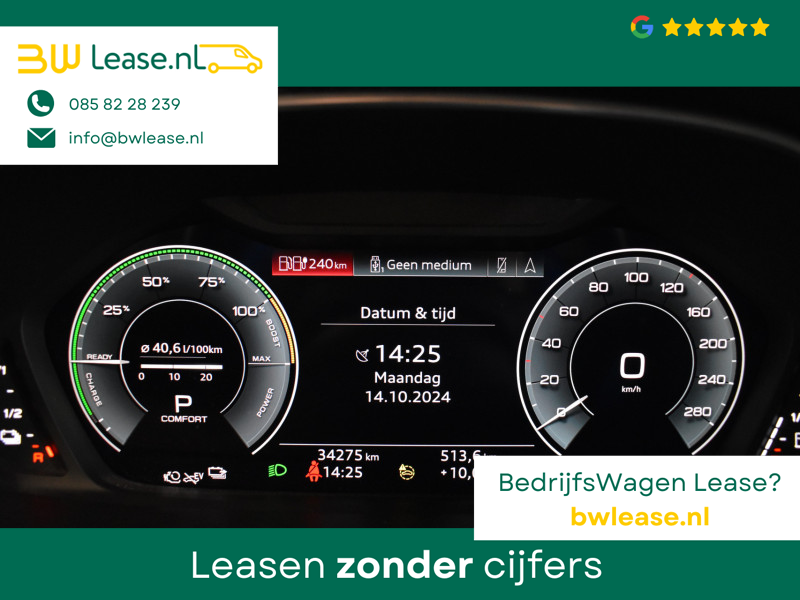 De Audi produceert in combinatie van de brandstof en elektramotor maar liefst 245PK en 400NM koppel. De 13kWH accu maakt een elektrische actieradius van circa 50 Kilometer.