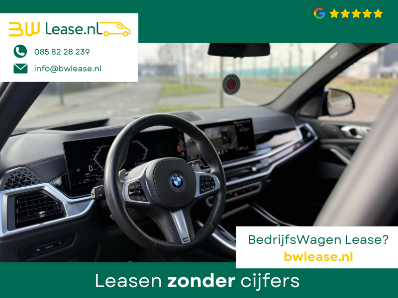 BMW X5 xdrive 50e 2024 M-Sport met opties zoals: Panoramadak, dodehoek detectie, 360 camera, 22 inch M742 velgen, M-Sport remmenrij rood, luchtvering, sfeerverlichting, Soft close deuren, elektrische stoelen met memory, Head-up display, Harman/Kardon, carplay multimedia, BMW individual interieur M performance seats, BMW led laser light, Active guard plus, parkassist, automatisch inparkeren, stoelkoeling en verwarming, automatische trekhaak en nog meer aan opties.