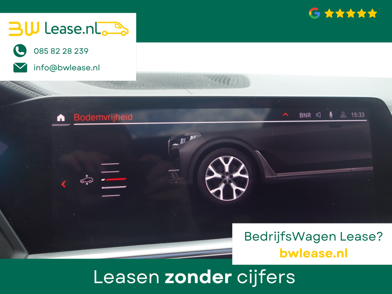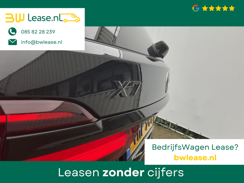 Hij is functioneel, flexibel en gebruiksvriendelijk, deze BMW X7. De auto is van het bouwjaar 2019 en is van de eerste eigenaar. Een dieselmotor en een automatische transmissie zorgen dat u met deze SUV prima vooruitkomt. Dit is een auto in het wat hogere segment; dat merkt u bijvoorbeeld aan de luchtvering. Van binnen is deze BMW X7 mooi uitgevoerd met een classy lederen interieur. Zit u goed? De stoelen zijn eenvoudig instelbaar dankzij de elektrische bediening met geheugen. Het interieur baadt in een zee van licht met het elektrische bediende glazen panoramadak. De bagageruimte is toegankelijk via een comfortverhogende elektrische achterklep. Bij deze BMW X7 is aan alles gedacht.. Tot de voorzieningen van deze auto behoren 21 inch lichtmetalen velgen, adaptief dempingsysteem, aluminium dakrailing, geluidsisolerende ramen, led-achterlichten, verstelbare lendensteunen, metallic lak, verwarmde ruitensproeiers, elektrisch inklapbare buitenspiegels en led-dagrijverlichting.