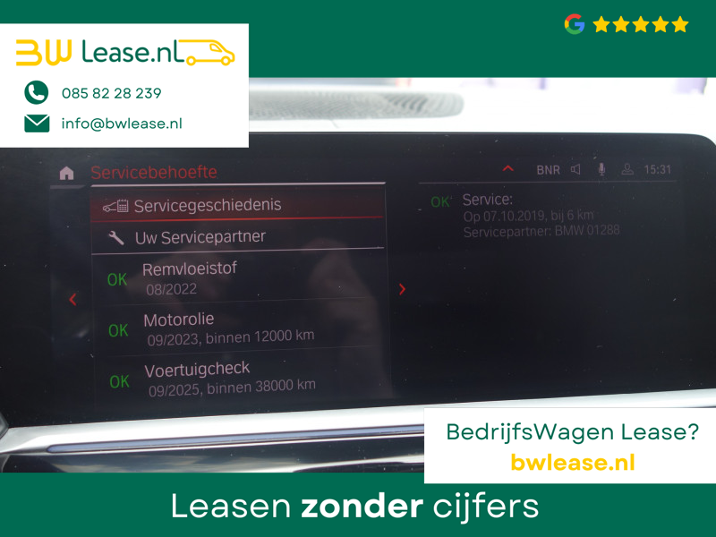 Het rijden met deze BMW wordt nog meer ontspannen dankzij de innovatieve technieken die onderweg over uw veiligheid waken. In het instrumentarium kunt u bovendien de verkeersborden zien die u onderweg tegenkomt. Zo helpt deze BMW u om veiliger te rijden. Onbedoeld bumperkleven is er niet bij, dankzij de forward collision warning. Die waarschuwt direct als een botsrisico met uw voorligger dreigt. Bij concentratieverlies van de bestuurder geeft vermoeidheidsherkenning automatisch een waarschuwingssignaal. Kan gebeuren: onbewust opschuiven naar de andere baan. Dan geeft de lane assist meteen een seintje. Dankzij veiligheidsvoorzieningen als autonoom remsysteem en dodehoekdetectie, bent u steeds veilig onderweg.