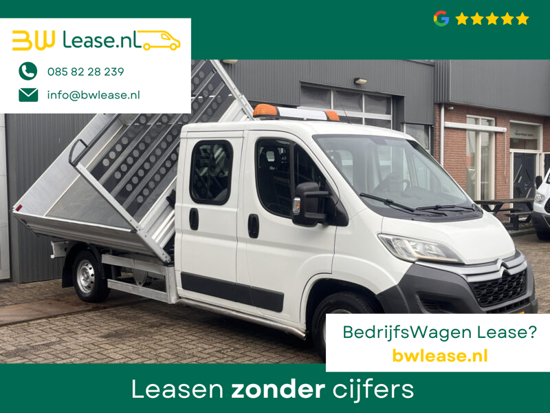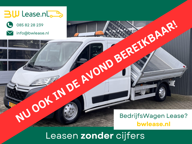 Een zeer nette Citroen Jumper gelijk aan Peugeot Boxer of Fiat Ducato 33 2.2HDI 130pk Dubbele cabine 3 Zijdenkipper Kieper Trekhaak 2500 kg trekgewicht 7-Persoons Telefoonverbinding 1e eigenaar open laadbak Pick-up P-up Euro 5 Kipper