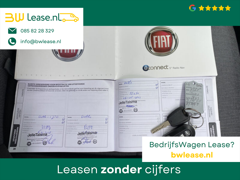 Een zeer nette Fiat Doblo 1.3 MJ bestel 90pk Marge komt geen btw en of Bpm meer overheen met Airco Cruise controle Navigatie Bluetooth voorbereiding Parkeerhulp achter 1e eigenaar Ex overheid Euro 5 Btw en Bpm vrij voor particulier gebruik !!
