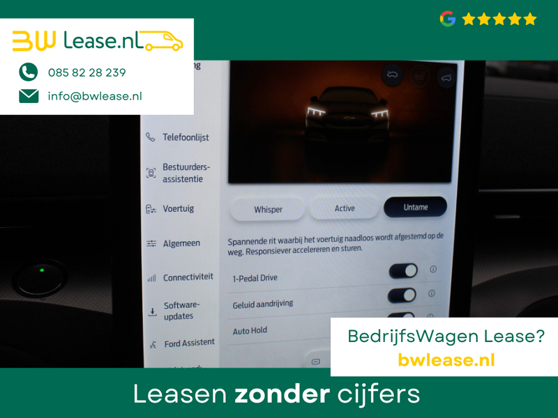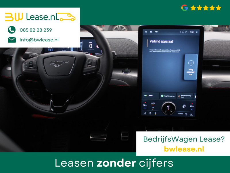 Ford Mustang Mach-E AWD 75 kWh / Panoramadak / Camera / Leder / 19” / B&O / Keyless / DAB / Dodehoek / ACC / Navigatie / Sfeerverlichting / Stoelverwarming