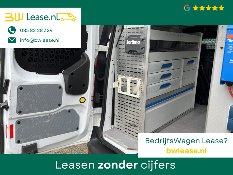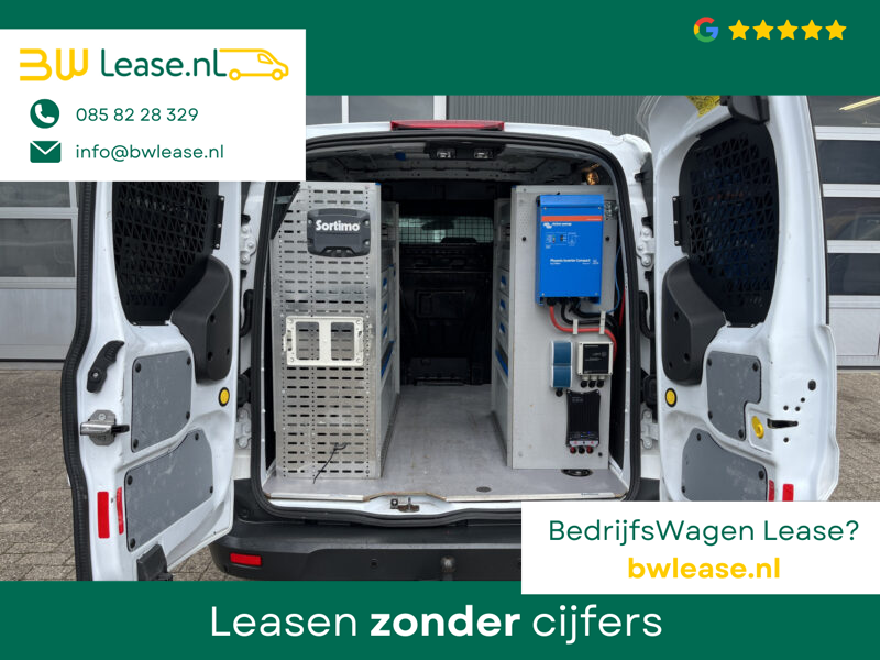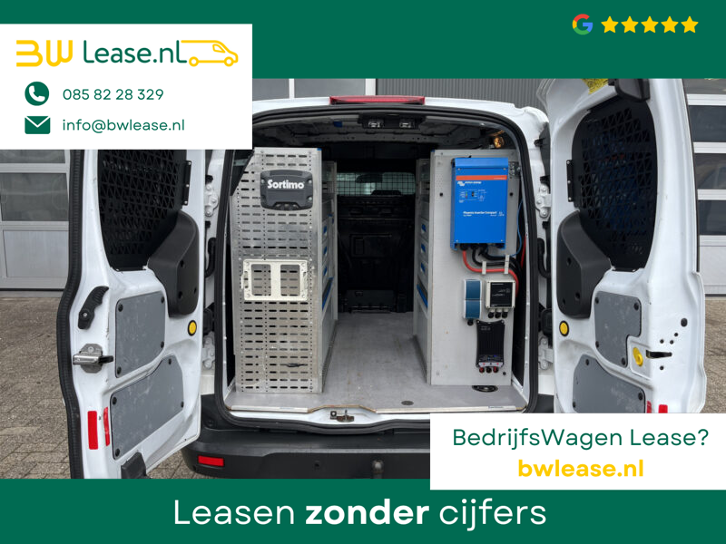 Een zeer nette Ford Transit Connect L1H1 1.0 Benzine met Airco 3-Persoons Sortimo Kastinrichting Omvormer Trekhaak 1200kg trekgewicht Schuifdeur Parkeersensoren achter 1e eigenaar Bpm vrij voor particulier gebruik !!