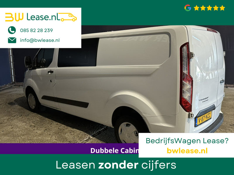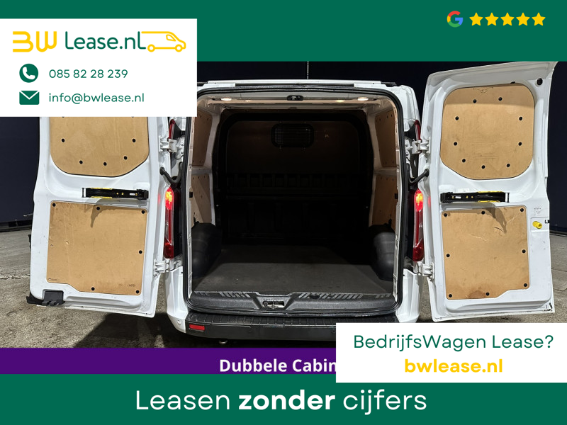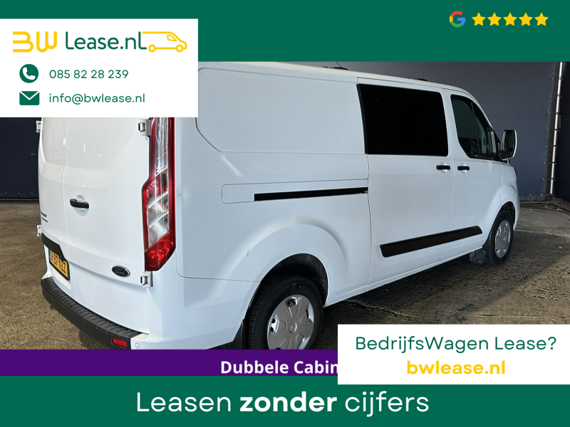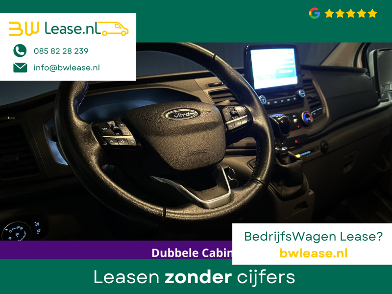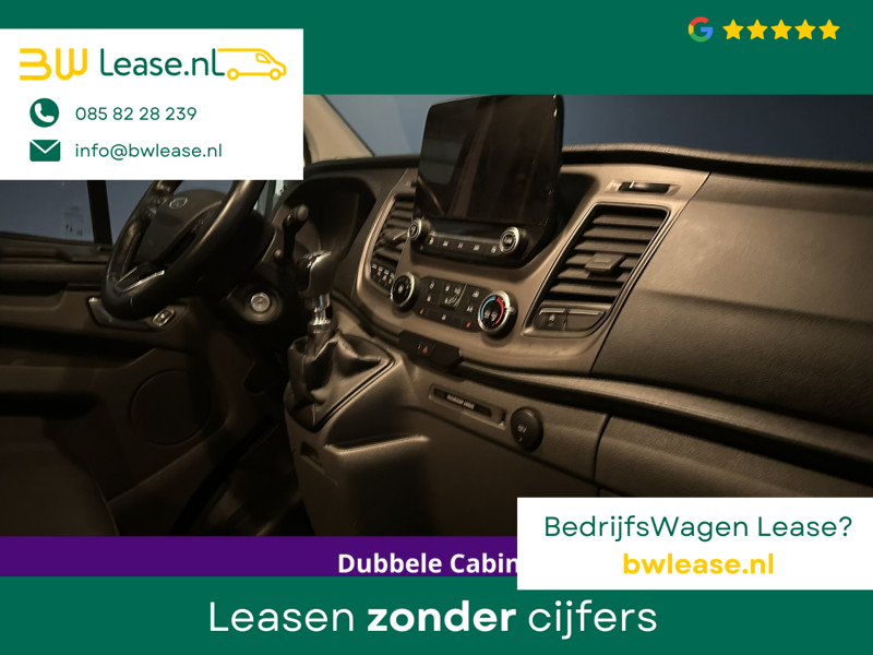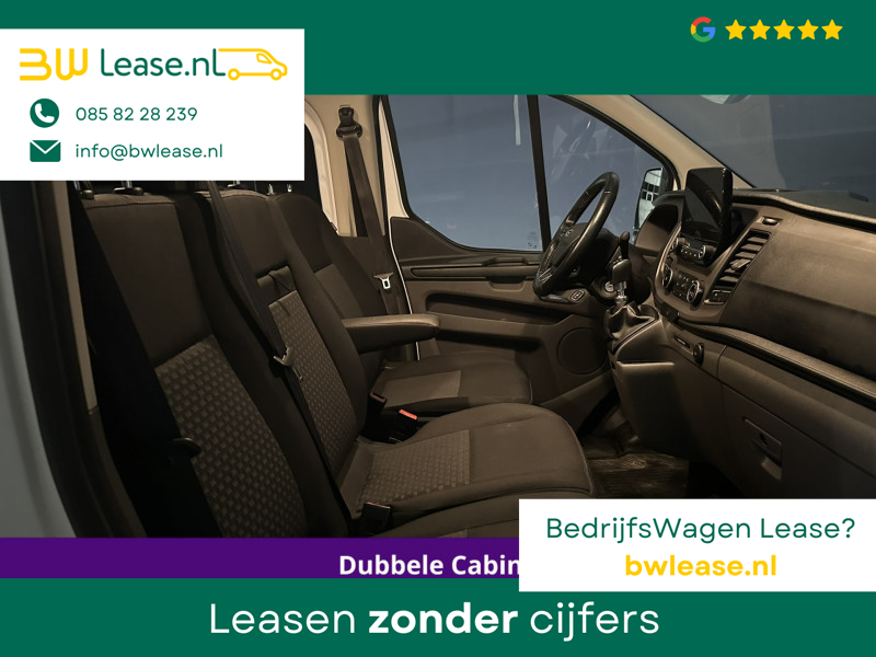170pk sterke Ford Transit Custom L2H1 Euro6 dubbel cabine met airconditioning, 6 zitplaatsen en camera. Dealer onderhouden en voorzien van navigatie, LED, Apple Carplay, Android Auto, cruisecontrol, stoelverwarming, verwarmde voorruit, parkeersensoren, 2800kg trekvermogen, dakdragers en bluetooth telefoonvoorbereiding.