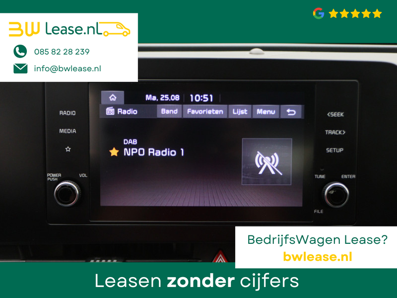 Comfortabel en veilig achteruitrijden gaat gemakkelijker dan ooit met behulp van de achteruitrijcamera. Onderweg geniet u van de kwaliteit van het audiosysteem met DAB-ontvangst. De bediening is gemakkelijk via knoppen op het stuur of via spraak. Electronic climate control regelt volautomatisch de temperatuur. U kiest de gewenste temperatuur en het systeem doet de rest. Om de veiligheid onderweg te verhogen, heeft deze Kia zowel een automatisch inschakelbare verlichting als een regensensor aan boord, zodat hij zelf de verlichting en de ruitenwissers kan inschakelen. Wat u ook in deze auto kunt vinden zijn automatisch dimmende binnenspiegel, lederen stuur, isofix-aansluiting, usb-aansluiting, centrale deurvergrendeling met afstandsbediening en bagage afdekhoes.