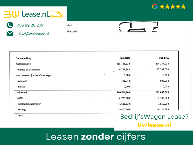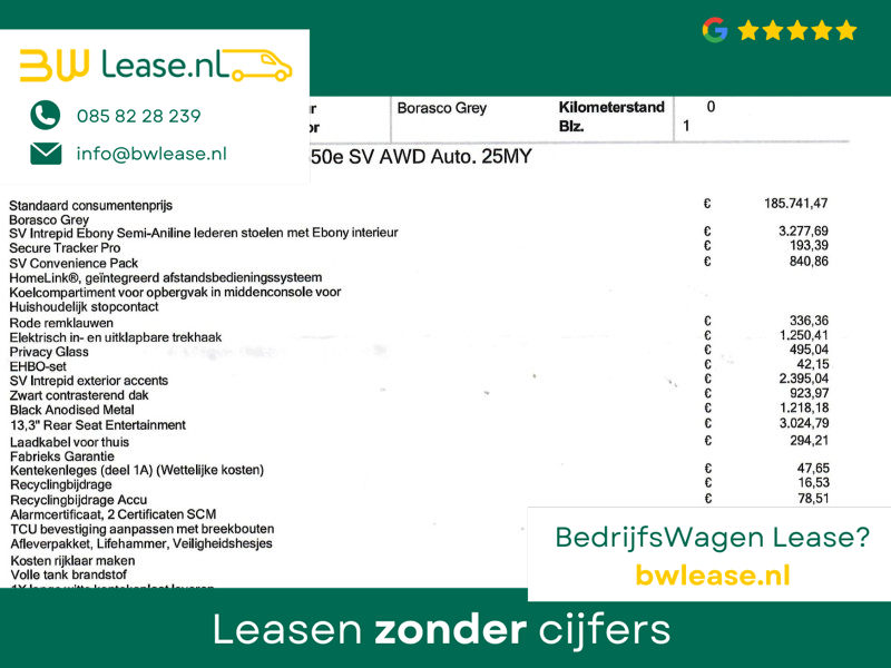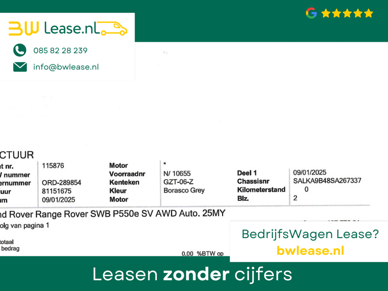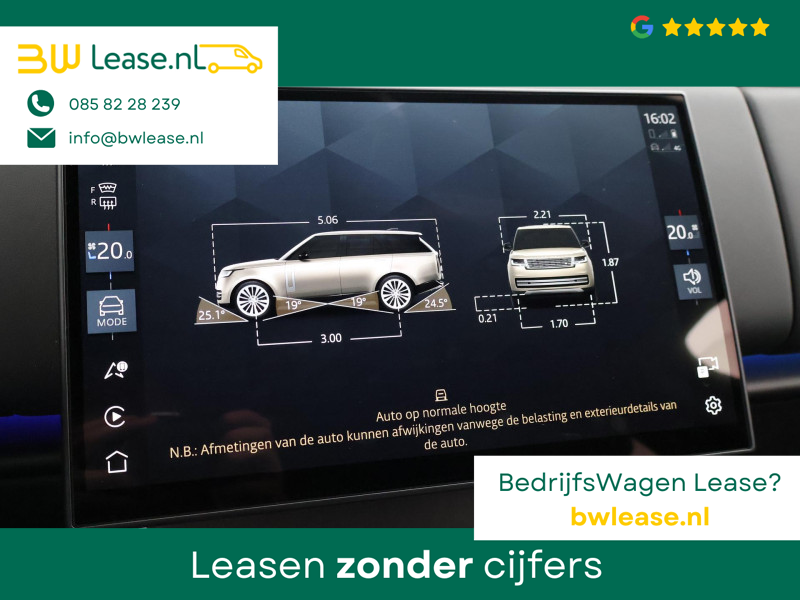 Origineel Nederlandse en 1e eigenaar Range Rover P550e PHEV Plug-in hybrid in de meest complete SV uitvoering in de kleur Borasco Grey met zwart dak en 22 inch gloss black velgen style 1073 met Michelin AllSeason banden, Slechts 9.120 km gereden, Absolute nieuwstaat, Zie onze website Hazet.nl voor 181 detailfoto’s van deze auto, Originele aankoopfactuur aanwezig van 239.827 euro na korting (zie scan tussen de foto’s), bruto nieuwprijs 245.117 euro. Bovenop de al overcomplete SV uitvoering staan de volgende meerprijs opties op de factuur: SV Intrepid exterior accents, SV Intrepid Ebony Semi-Aniline lederen stoelen met Ebony interieur, SV Convenience pack, HomeLink afstandsbediening, Rear Seat Entertainment met 13,3 inch schermen en draadloze headsets (nooit gebruikt nog in plastic), Elektrisch in- en uitklapbare trekhaak, Privacy glass, Rode Brembo remklauwen, Secure Tracker Pro, Black Ceramic Matt bedieningselementen, Zachtgenerfd leder stuurwiel, SV Veneer-Black Anodised Satin & Artwork, Koelcompartiment voor opbergvak in middenconsole voor, Houdhoudelijk stopcontact, Alarm klasse 3 met certificaat, Laadkabel voor thuis. 5 jaar fabrieksgarantie tot en met 150.0000 km. Buiten de meerprijs opties de meest opvallende zaken: SV Bespoke Full Extended Leather Upgrade, Volledig lederen hemelbekleding, Lederen hoedenplank elekrisch inklapbaar en uitklapbaar, Leder dashboard, Digitale cockpit met Apple Carplay en Navigatie weergave, 360 3D Surround Camera, Luchtvering, Panorama schuif/kanteldak, Elektrische stoelverstelling met geheugen voor en achterin, Buitenste 2 zitplaatsen neerklapbaar tot ligmodus, Elektrisch neerklapbare achterzittingen, DAB, Apple Carplay en Android Auto, Stuurwielverwarming, Stoelverwarming, Massagestoelen met verschillende massageprogramma’s en Hot Stone modus, Neerklapbare module met Touch-screen tablet tussen de achterstoelen in, 5-persoons uitvoering, Meridian Signature High End Audio, Head-up display, Elektrische stuurverstelling, Sfeerverlichting met verschillende kleuren, Verlichte SV dorpellijsten, Gelaagd glas zijruiten extra isolerend, Adaptive cruise control met steerring assist, 13,1 touch-screen scherm, Twin-Speed tussenbak met hoge en lage gearing, Verwarmde voorruit en ruitensproeiers, Standkachel interieurvoorverwarming, All Wheel Steering vierwielbesturing, Bright Metal pedalen, Verkeersbordenherkenning, Draadloze telefoonlader, Camera binnenspiegel (kan ook op normale modus), Stoelventilatie / stoelkoeling voor en achter, Skiluik, Dynamische richtingaanwijzers, Zonneschermen achterin, Satin Chrome schakelpaddels, AWD vierwielaandrijving, Soft Door Close, Parkeersensoren voor en achter. 3.0 benzine 6-cilinder plug-in hybride met 550 PK met 8-traps automaat. Van 1 particuliere Nederlandse eigenaar geweest, daardoor een marge auto, geen verrekenbare BTW.