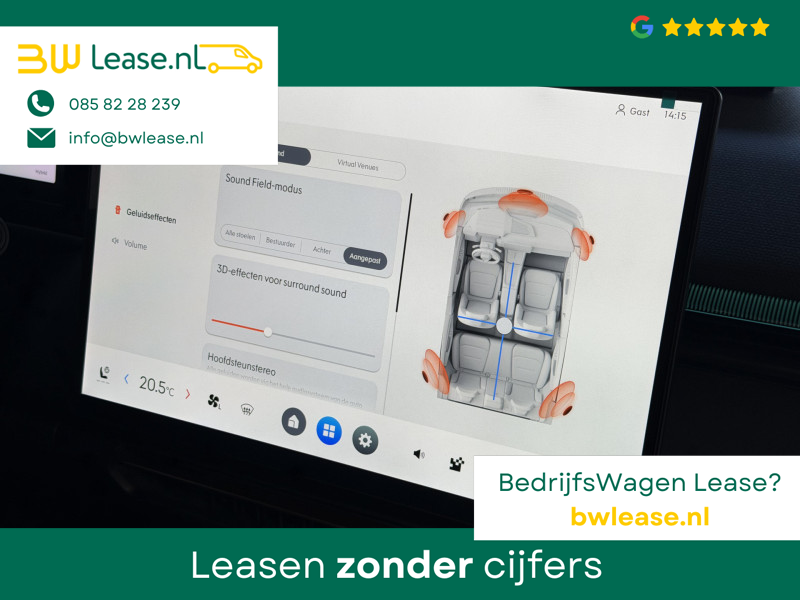 Harman Kardon 23‑speaker premium audiosysteem met subwoofer en speakers in de hoofdsteunen