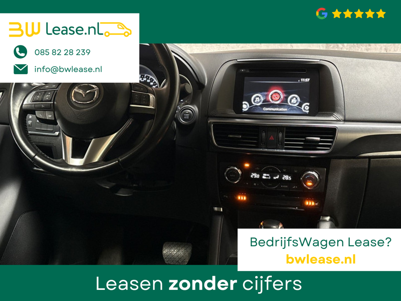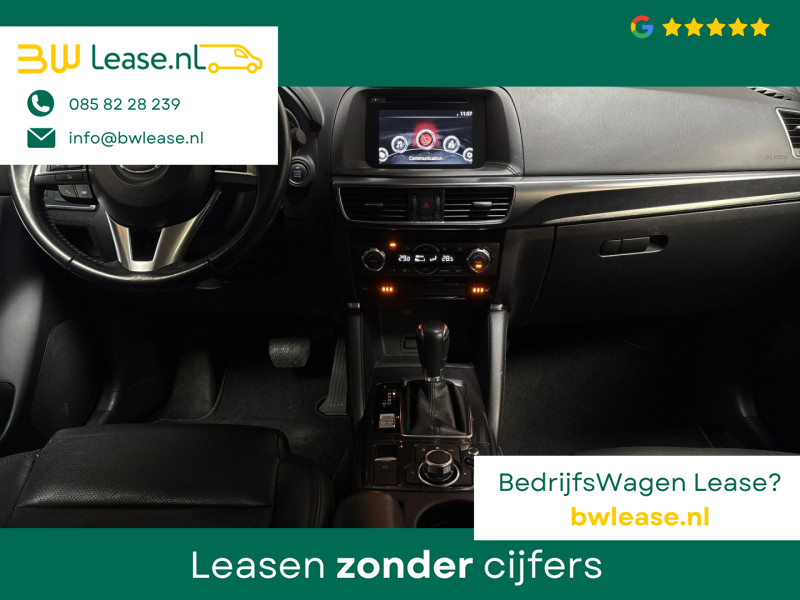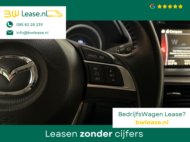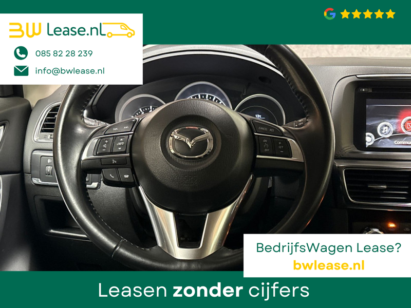 Bij het ontwerpen van de Mazda CX-5 stonden uw comfort en uw veiligheid centraal. Deze CX-5 is van het bouwjaar 2016. De krachtige benzinemotor staat garant voor uitstekende prestaties. Als we het over extra cachet hebben, moeten we zeker het lederen interieur noemen. Regen, wind, hagel, sneeuw? Als het buiten guur is, doet de stoelverwarming z’n weldadige werk! Een heerlijk luxe optie van deze auto is het verwarmbare stuurwiel. Natuurlijk behoren 19 inch lichtmetalen velgen, LED koplampen, donker getint glas achter, LED-achterlichten en bestuurdersstoel met lendensteunverstelling ook tot de uitrusting van deze complete auto.