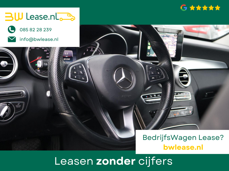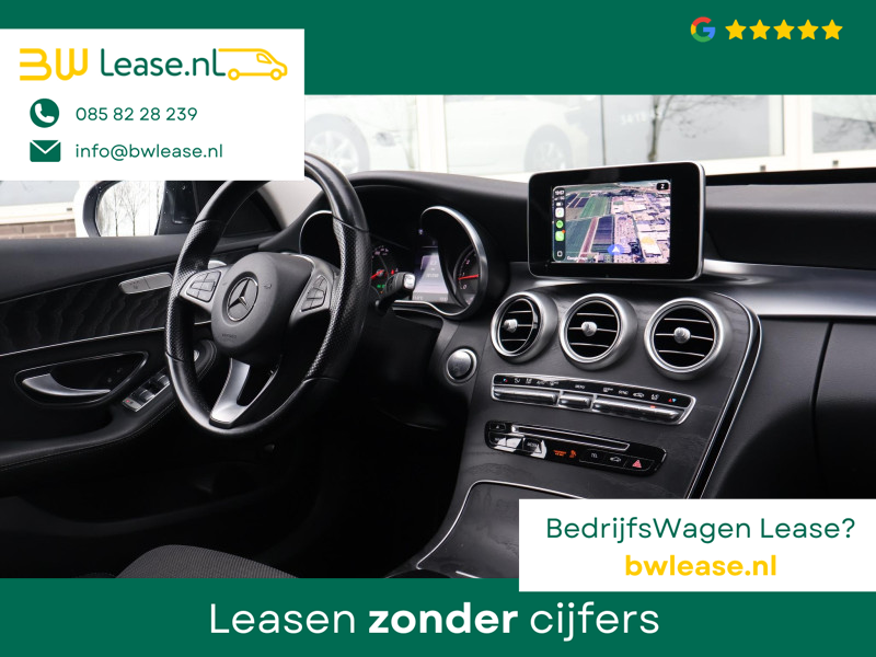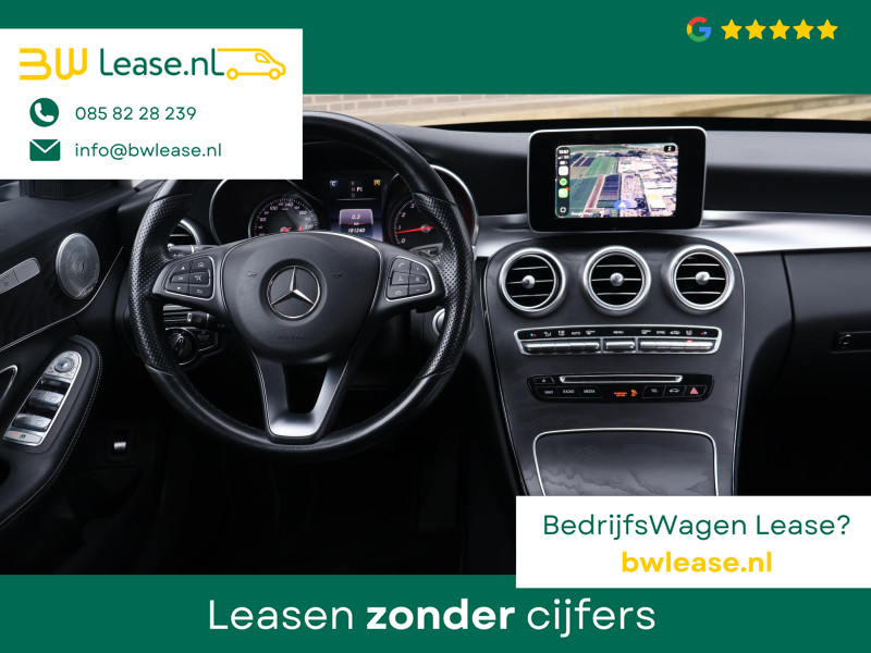 Mercedes-Benz C-klasse 200 Estate Premium Plus 184 PK Automaat, Elektrisch wegklapbare trekhaak met 1800! KG trekgewicht, Draadloze Apple carplay/Android auto achteraf ingebouwd die je opstart doormiddel van het “Favorieten knopje” ingedrukt te houden, Hierdoor kunt u gebruik maken van verschillende apps waaronder: Spotify, Whatsapp en Flitsmeister, Achteruitrijcamera, Stoelverwarming met 3 standen, Comfortstoelen met verlengbaar zitvlak, Bluetooth telefoonverbinding met audiostreaming, Navigatiesysteem met kaartweergave, Elektrisch inklapbare buitenspiegels, 18 Inch lichtmetalen AMG velgen, LED koplampen, LED achterlichten, Elektrische achterklep, Climate control, Cruise control, Sfeerverlichting interieur met verschillende kleuren.