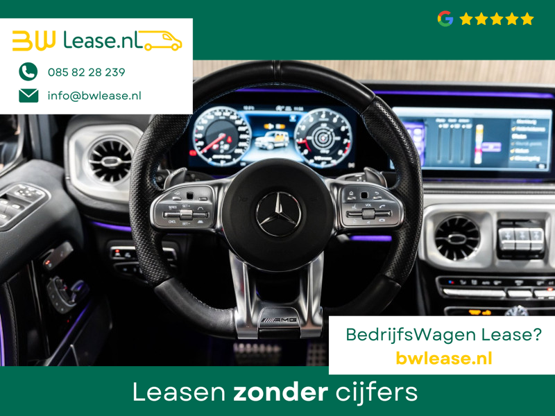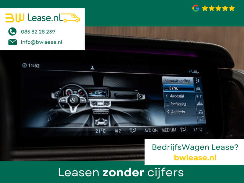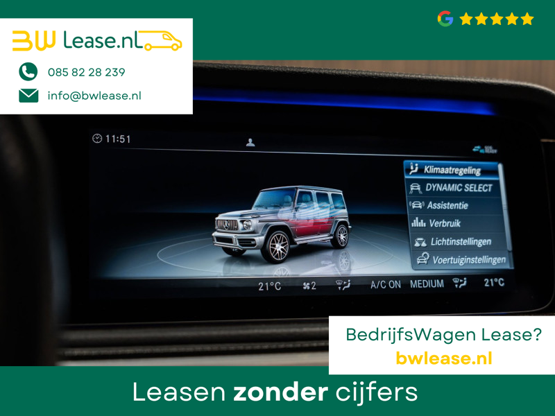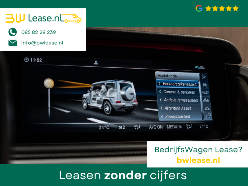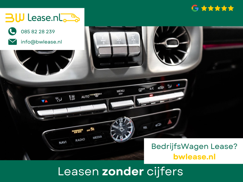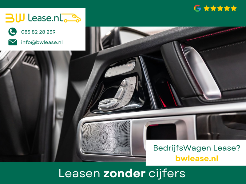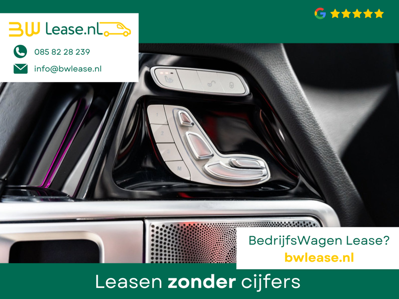 U rijdt gemakkelijk, comfortabel en zonder zorgen met deze Mercedes-Benz G-klasse. Bent u bestand tegen een beetje bekijks? Dan zal de AMG-styling u zeker aanspreken. De krachtige motor geeft deze Mercedes-Benz uitstekende prestaties. Misschien bent u niet veeleisend, maar na dit elektrisch bediende glazen panorama dak en het lederen interieur wilt u nooit anders meer. Neem plaats op de comfortabele stoelen. Dankzij de elektrische bediening en het geheugen is het eenvoudig om hierin de beste zitpositie te vinden. Op gure dagen is het ook achterin heerlijk bijkomen op de verwarmde achterbank. De uitmonstering van deze auto wordt gecompleteerd door onder meer 22 inch lichtmetalen velgen, LED koplampen, AMG-styling, warmtewerend glas, in delen neerklapbare achterbank en treeplanken.