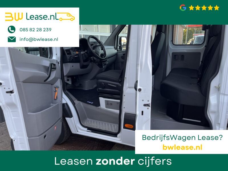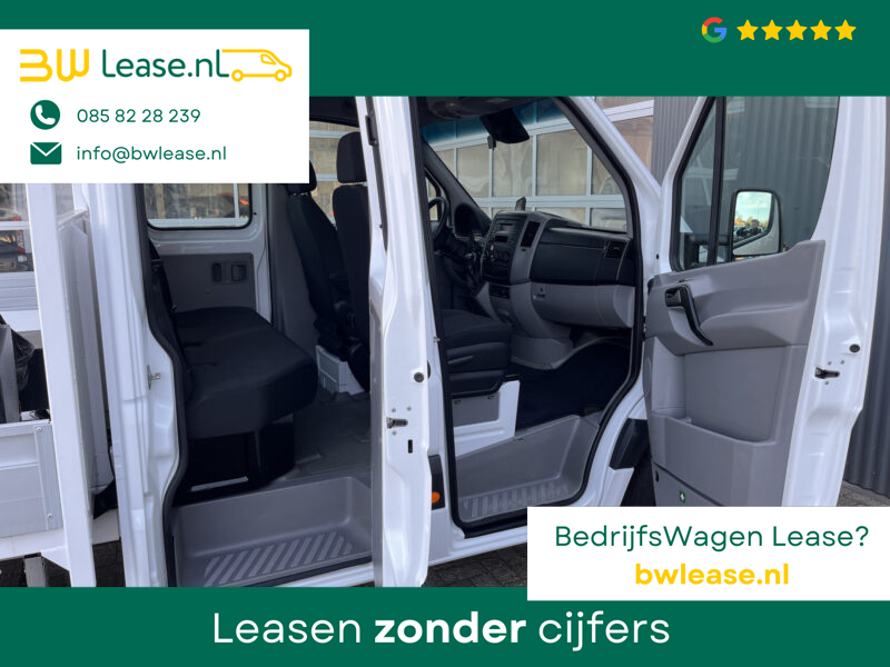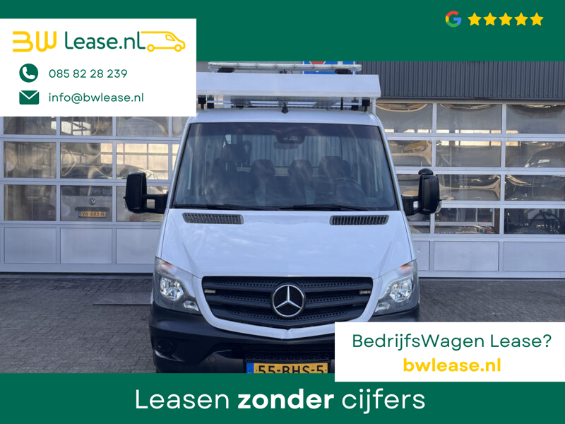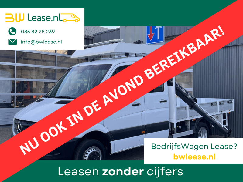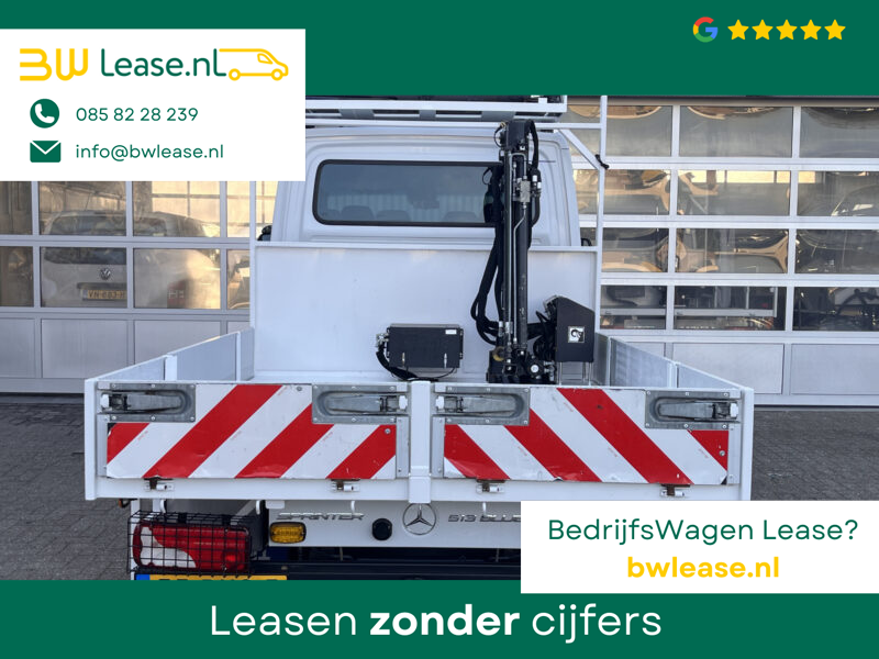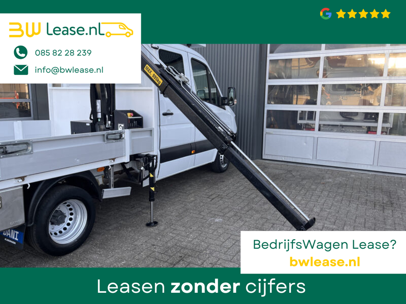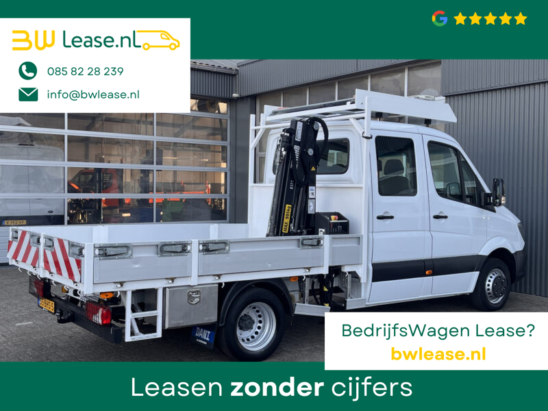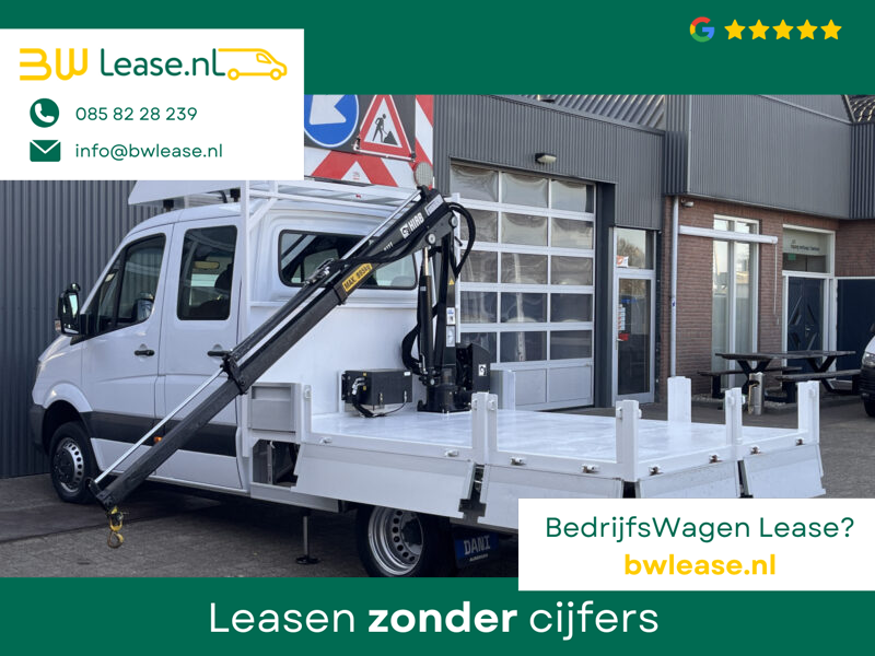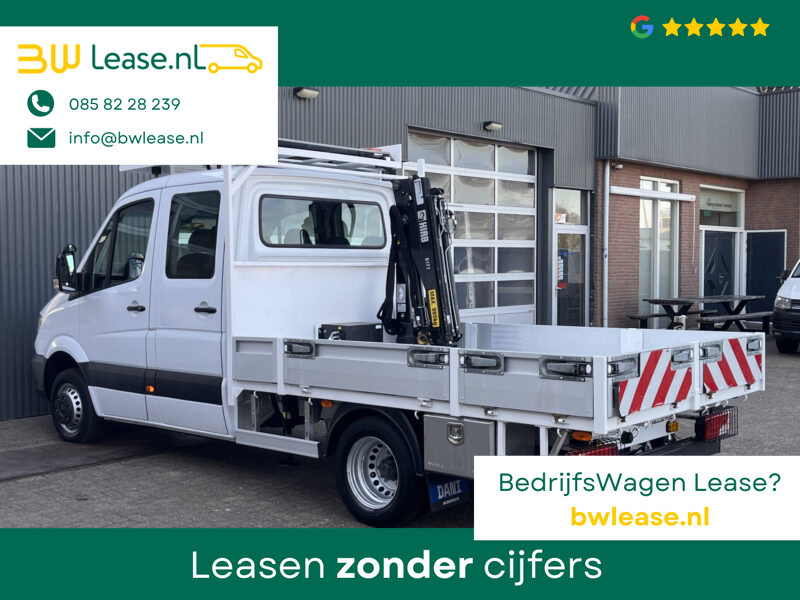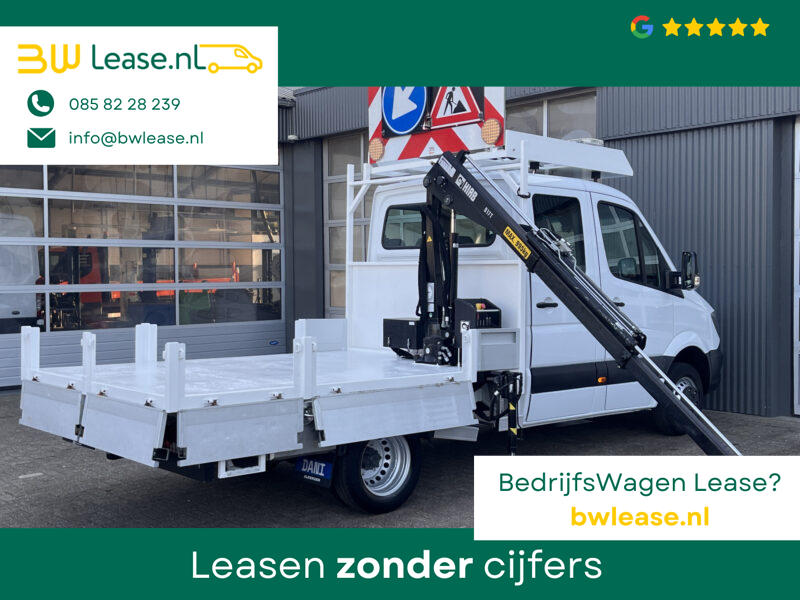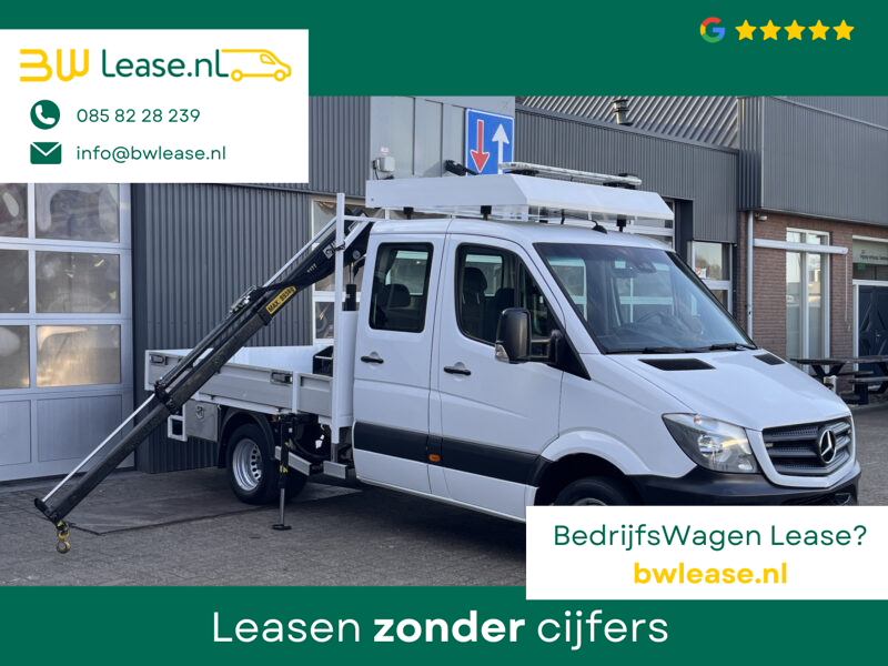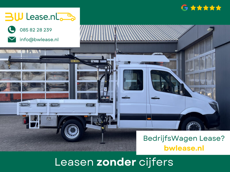 Een zeer nette Mercedes Sprinter 514 CDI 140pk Dubbele cabine Hiab Laadkraan 018T Trekhaak 2000 kg Airco 6 persoons uitvoering Open laadbak Pick-up Euro 6 Verkeersbord Actiebord Pijlenbord Bakwagen P-up Tachograaf 1e eigenaar ex gemeente