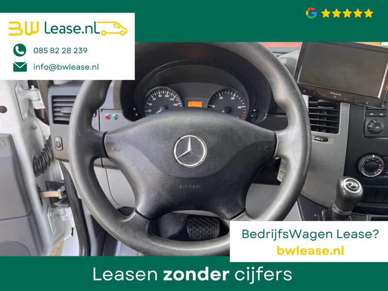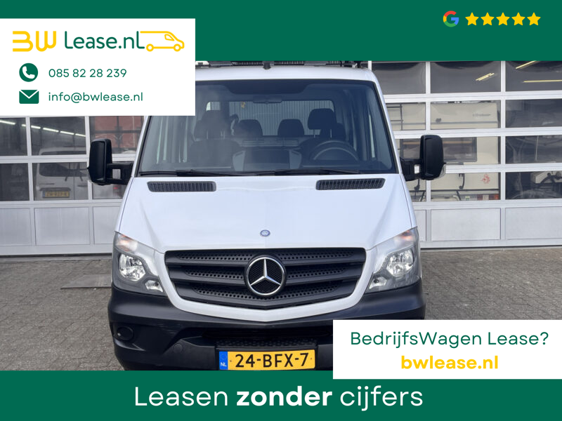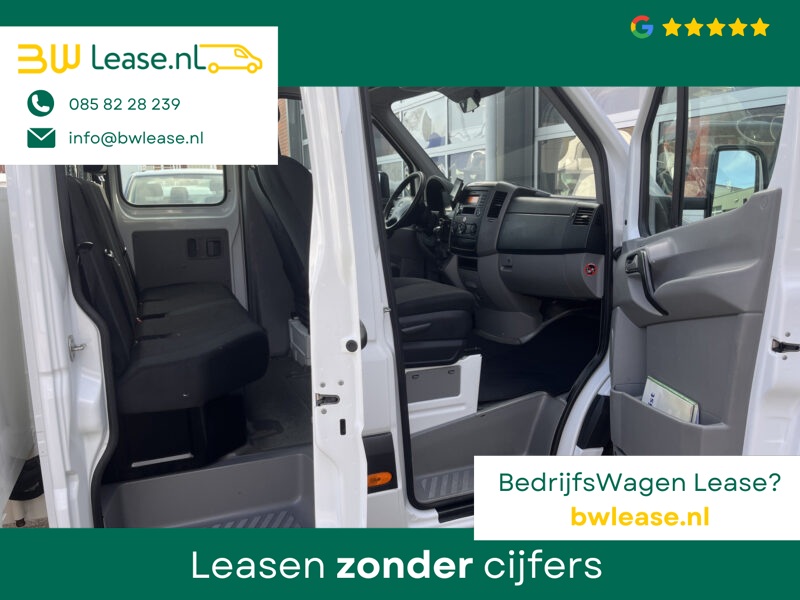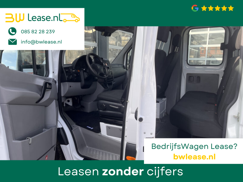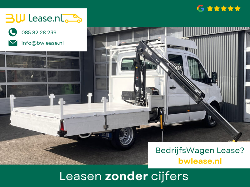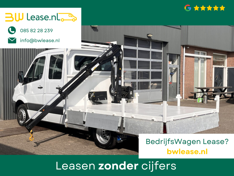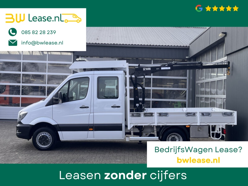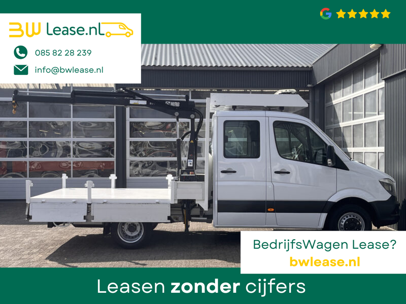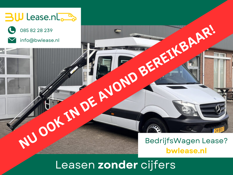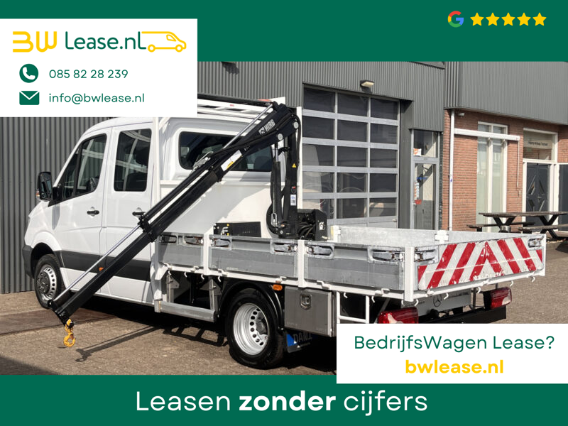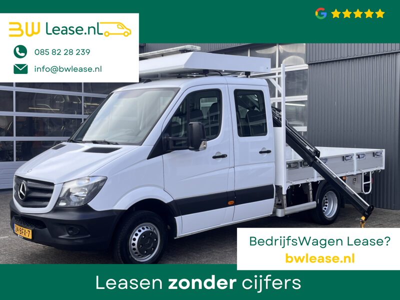 Een zeer nette Mercedes Sprinter 514 CDI 140pk Dubbele cabine Hiab Laadkraan 018T Trekhaak 2000 kg Airco 6 persoons uitvoering Open laadbak Pick-up Euro 6 Verkeersbord Actiebord Pijlenbord Bakwagen P-up Tachograaf 1e eigenaar ex gemeente