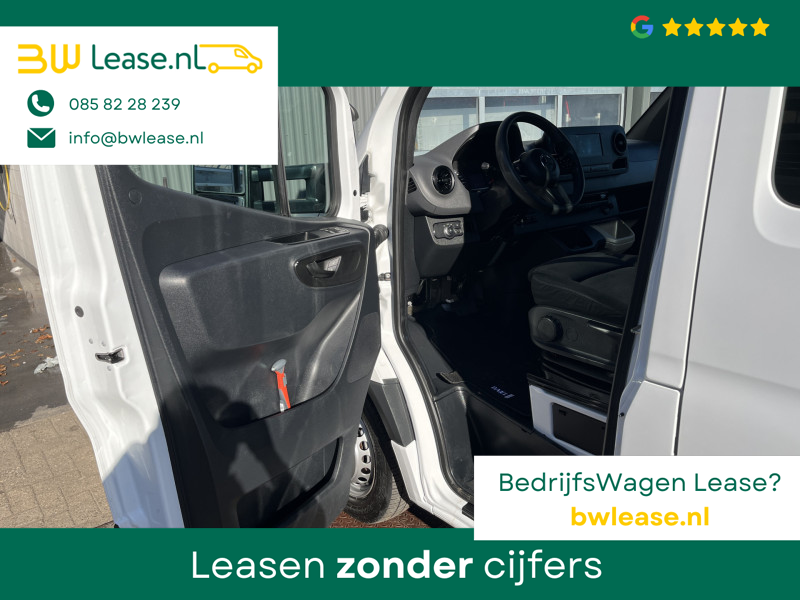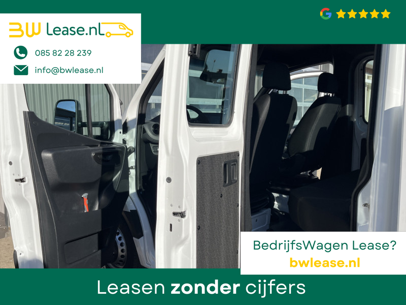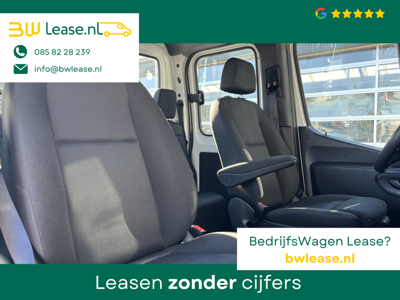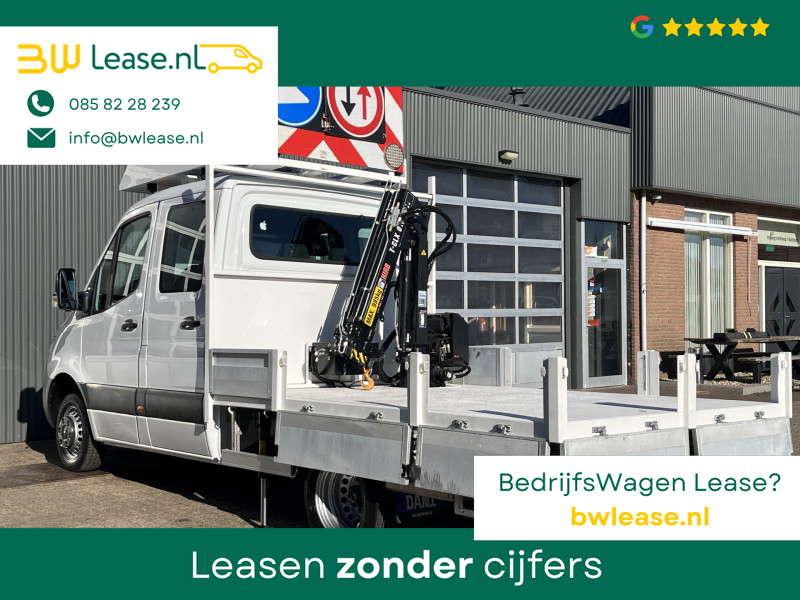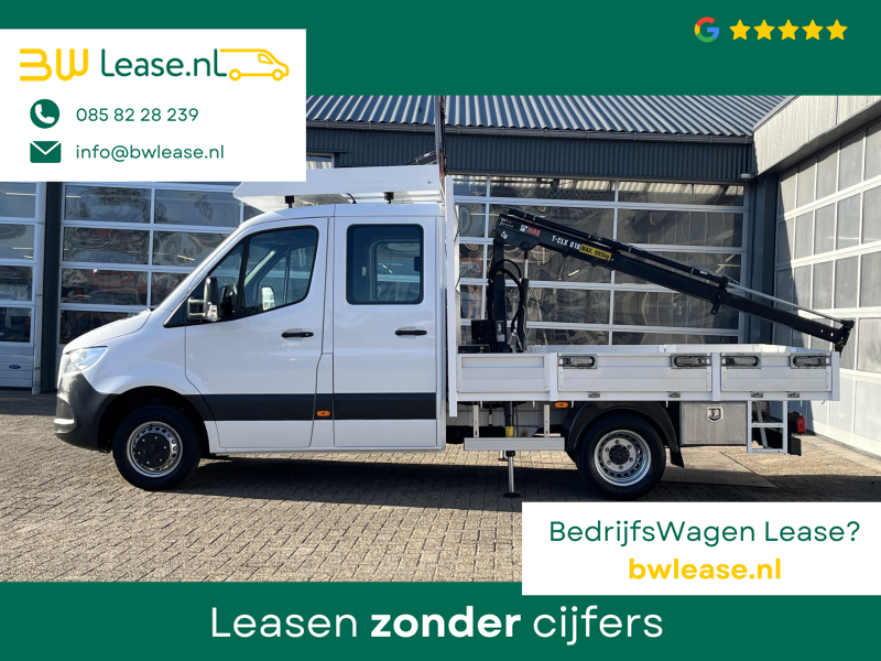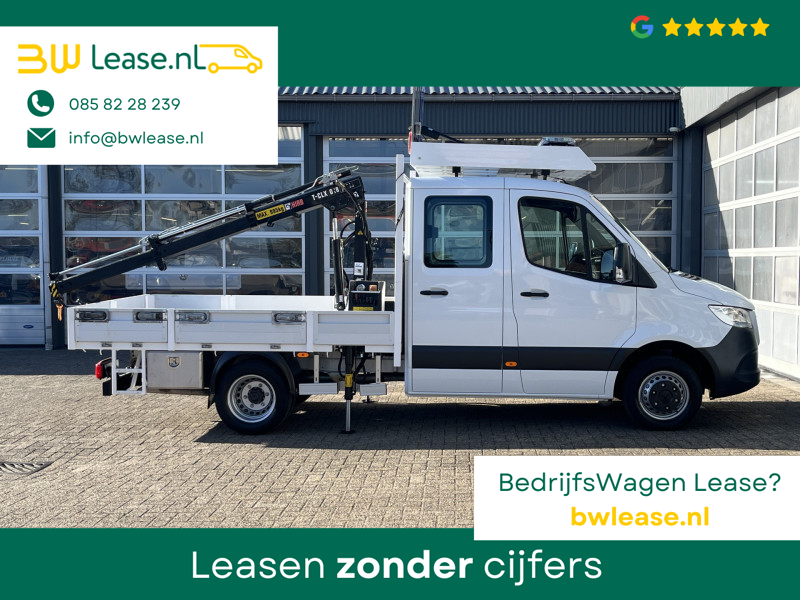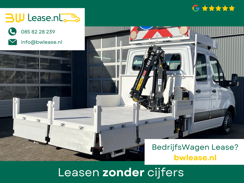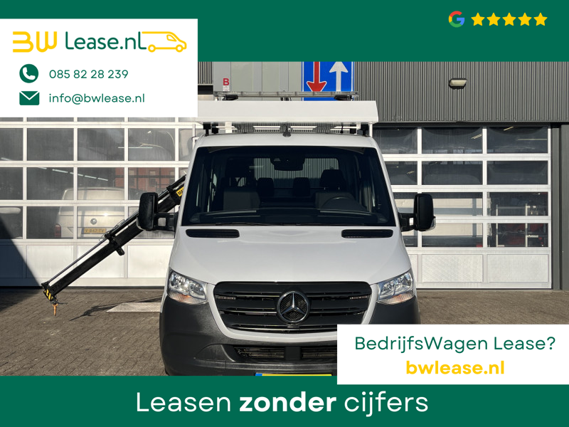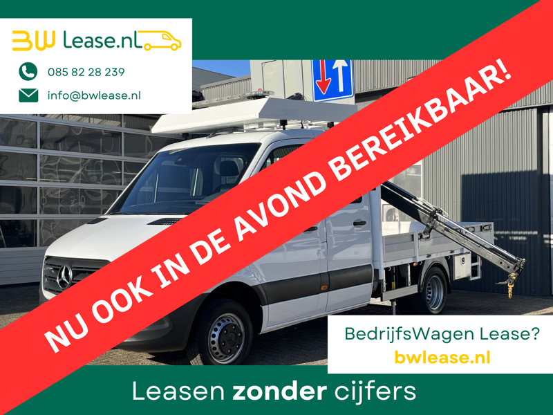 Een zeer nette Mercedes Sprinter 514 CDI 140pk Dubbele cabine Hiab Laadkraan 018T Trekhaak 3500kg trekgewicht Airco 6-Persoons Open laadbak Pick-up Euro 6 Verkeersbord Actiebord Pijlenbord Bakwagen P-up Tachograaf 1e eigenaar ex gemeente