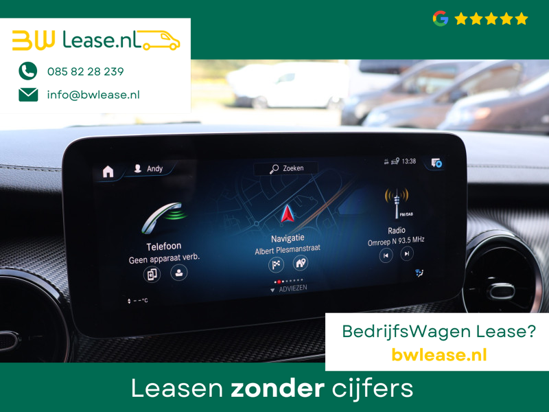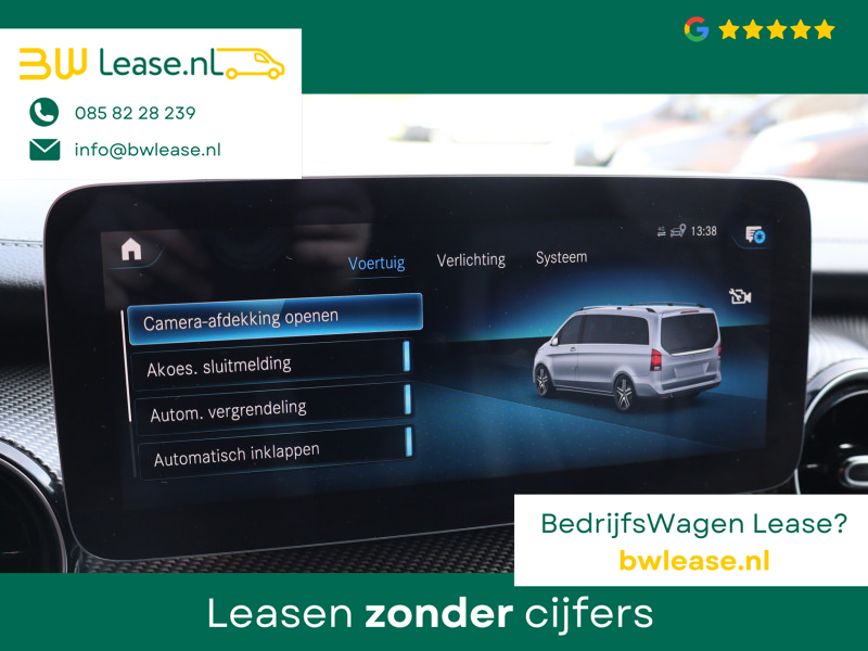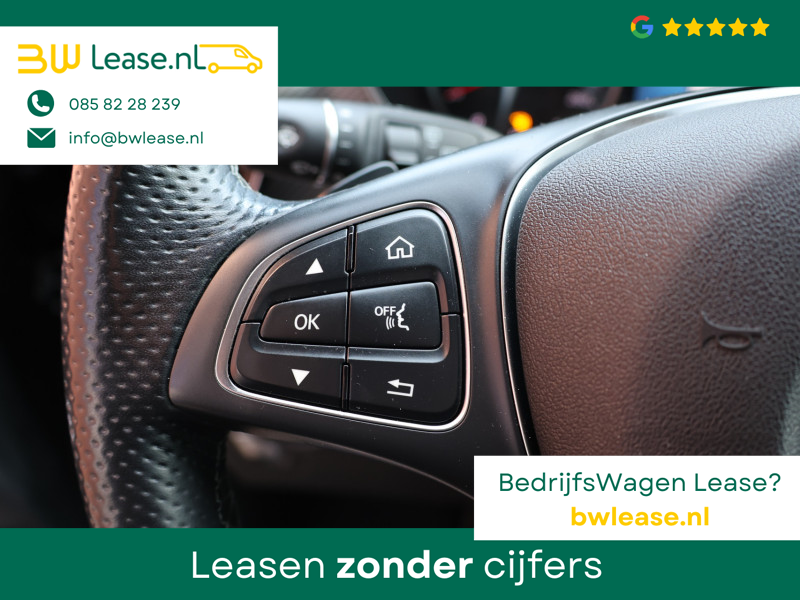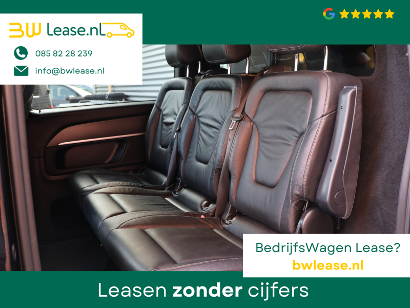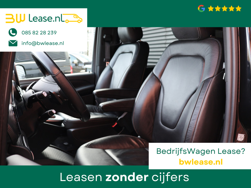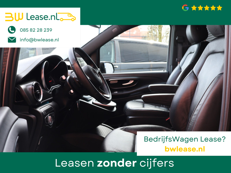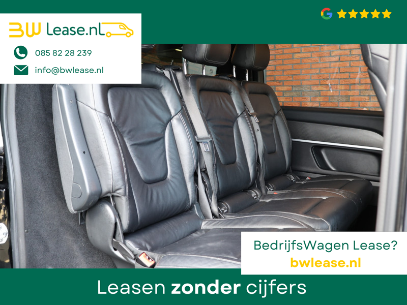 Met zijn inspirerende design en zijn uitstekende rijkwaliteiten biedt deze Mercedes-Benz V-klasse een geweldige rijervaring. De verschillende elementen van de AMG-sportpakket accentueren de dynamische lijnvoering van deze V-klasse. De krachtige dieselmotor van deze auto is gekoppeld aan een automatische transmissie. Fraai hoor, zo’n lederen interieur. En door de gemakkelijk elektrisch bedienbare achterklep bent u snel overtuigd van deze auto. Kou en regen maken geen indruk. Binnen zit u comfortabel dankzij de stoelverwarming. De schuifdeur bij het passagiersdeel is ook een voordeel: geen uitzwaaiende portieren en een royale instap. Tot de uitrusting van deze Mercedes-Benz behoren ook 19 inch lichtmetalen velgen, LED koplampen, AMG-sportpakket, sportonderstel en warmtewerend glas.