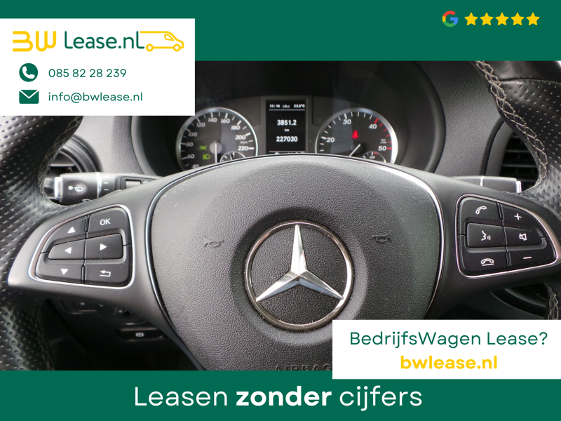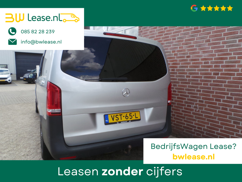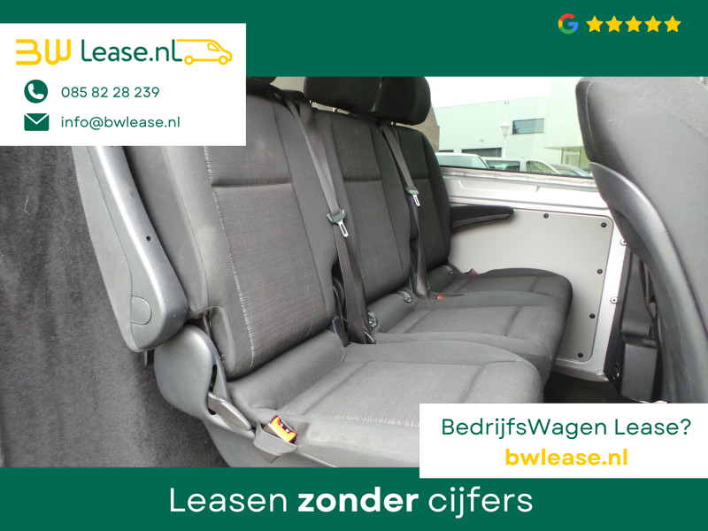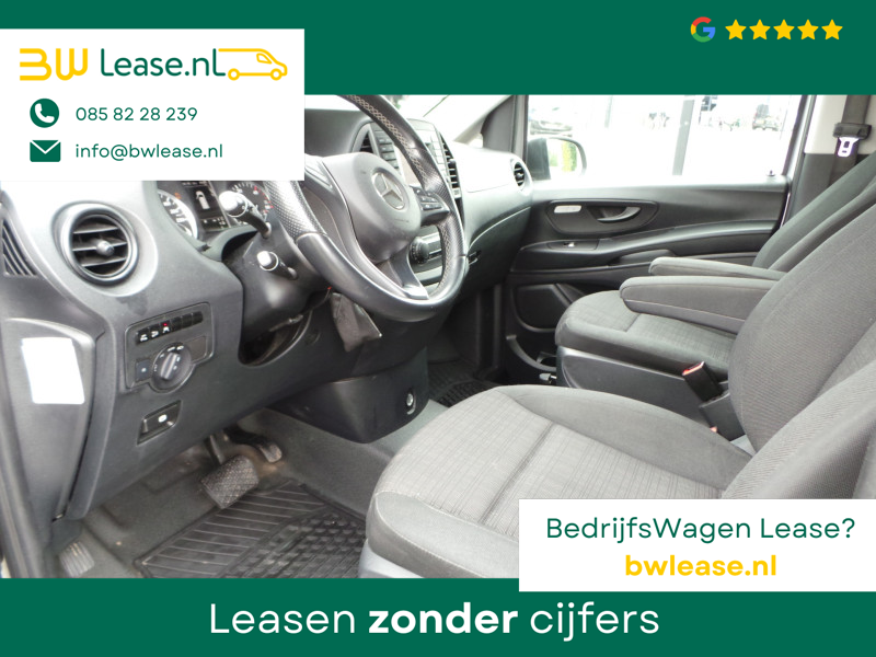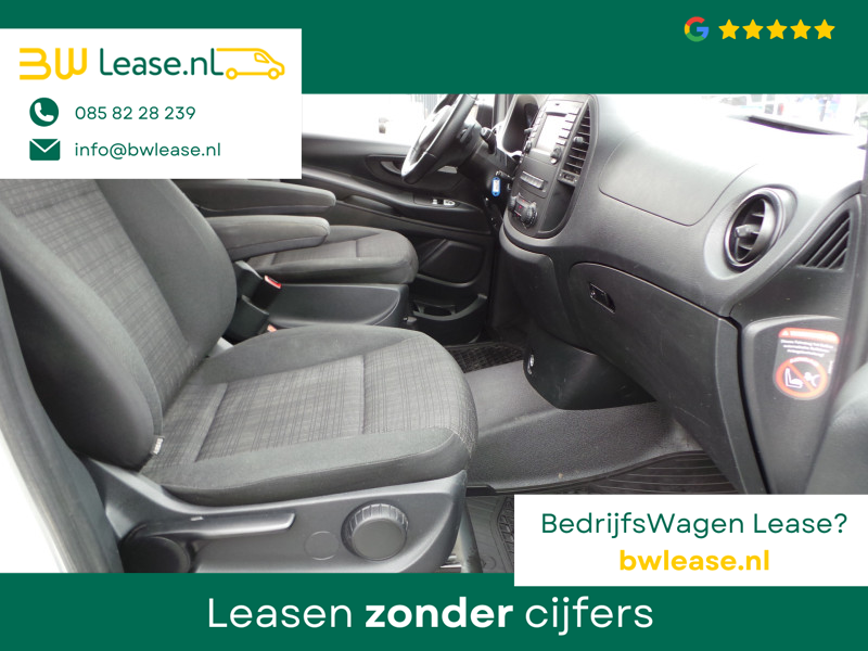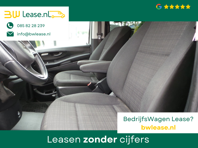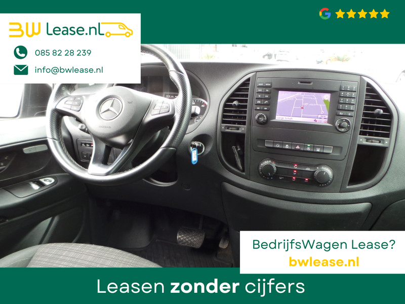 De Mercedes-Benz Vito belichaamt de hoogste klasse, zichtbaar in zijn stijlvolle belijning en luxueuze binnenkant. Dit is zoals u van een typische Duitse auto kan verwachten. De aandrijving van deze Mercedes-Benz wordt verzorgd door een viercilinder dieselmotor en een automatische transmissie. Lekker hoor, die verwarmbare voorstoelen. Helemaal op koude dagen. Zit u goed? Nou, zeker wel, met de comfortstoelen! De schuifdeur zorgt voor een grote deuropening waardoor niet alleen in- en uitstappen gemakkelijker wordt, maar ook bijvoorbeeld het plaatsen van bagage of een kinderzitje. U wordt in deze auto ook getrakteerd op 17 inch lichtmetalen velgen, warmtewerend glas, trailer assistent, elektrisch verstelde en verwarmde buitenspiegels, elektrisch bedienbare ramen voor en start-stopsysteem.