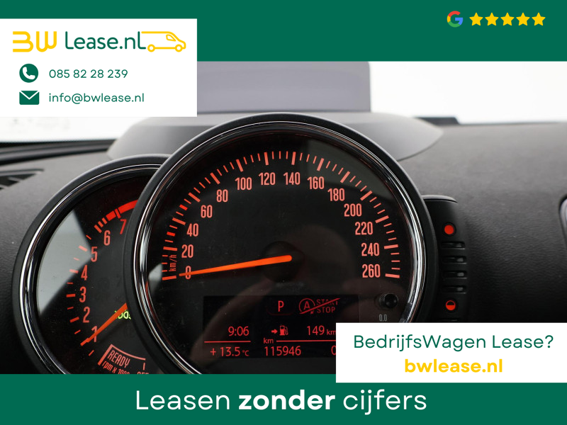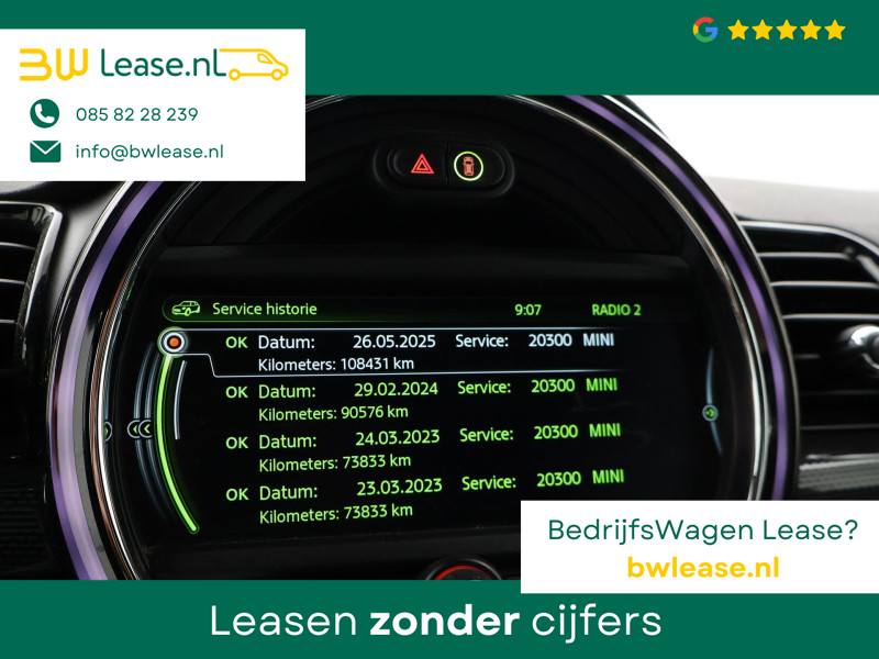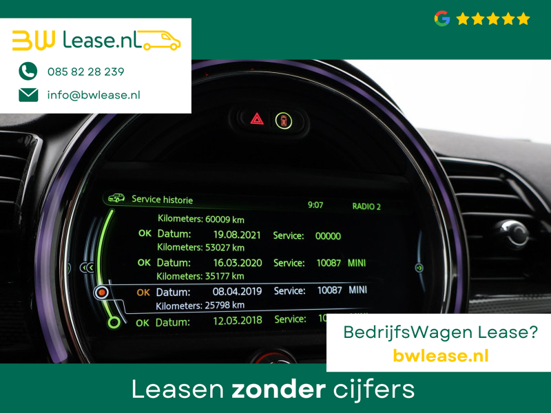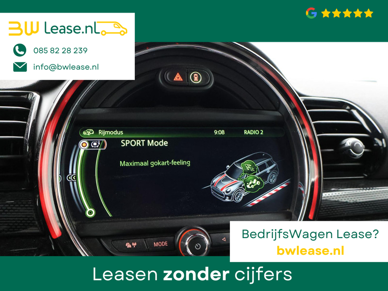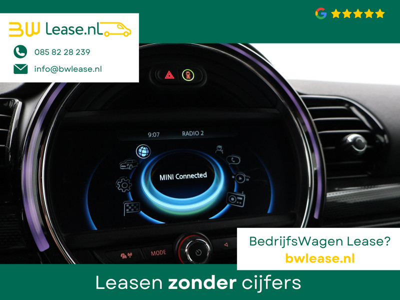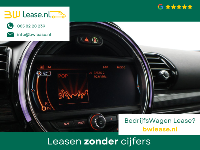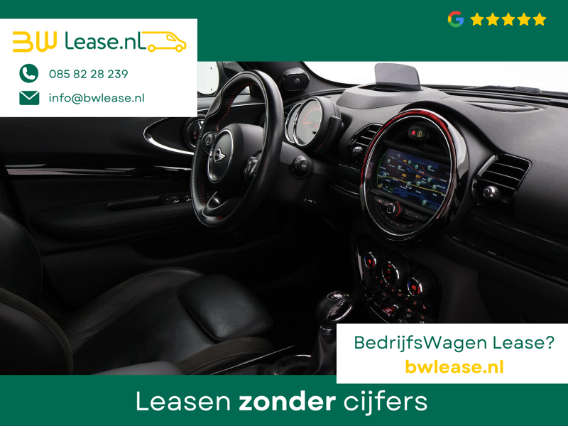 Origineel Nederlandse Clubman Cooper S 2.0 4-cilinder 192 PK Automaat in het Midnight Black metallic met mat zwart dak, Panorama schuif/kanteldak, Sportstoelen leder, Stoelverwarming, Elektrische stoelverstelling links en rechts, Geheugenfunctie op de bestuurdersstoel, Head-up display, Elektronisch verwarmde voorruit, Privacy glass, 19 inch lichtmetalen velgen, Full LED koplampen, LED dagrijverlichting, LED achterlichten, Bluetooth met audiostreaming, Achteruitrijcamera, Harman/Kardon premium sound, Climate control, LED Mistlampen, Navigatie Professional breedbeeld, Zwarte hemelbekleding, Onderhoudshistorie compleet digitaal bijgehouden, Sfeerverlichting interieur met verschillende kleuren.