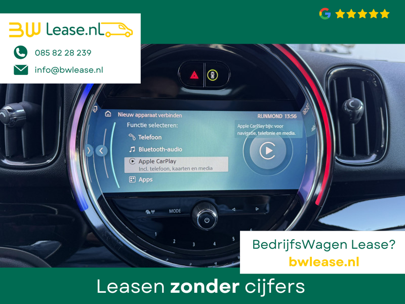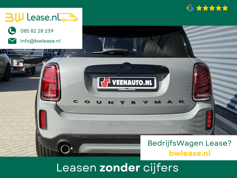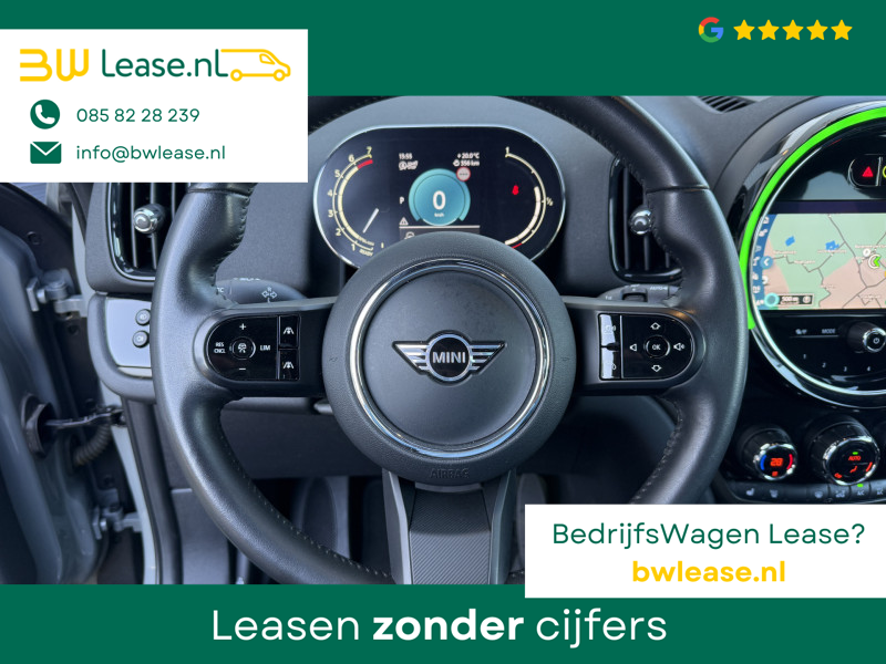 Schitterende Mini Countryman 1.5 Cooper automaat in Moonwalk Grey metallic met hoogglans zwarte licht metalen velgen en Black Optic pakket. Deze Mini is bijzonder compleet uitgerust met onder andere de volgende opties: Panorama dak, Harman Kardon Audio, lederen bekleding, elektrische bedienbare stoel met memory en lende steun verstelling, LED verlichtingspakket, Apple Carplay, achteruitrijcamera, navigatie, virtuele cockpit, adaptieve cruise control, keyless entry, draadloze telefoonlader, parkeersensoren voor + achter met parkeer assistent, etc..