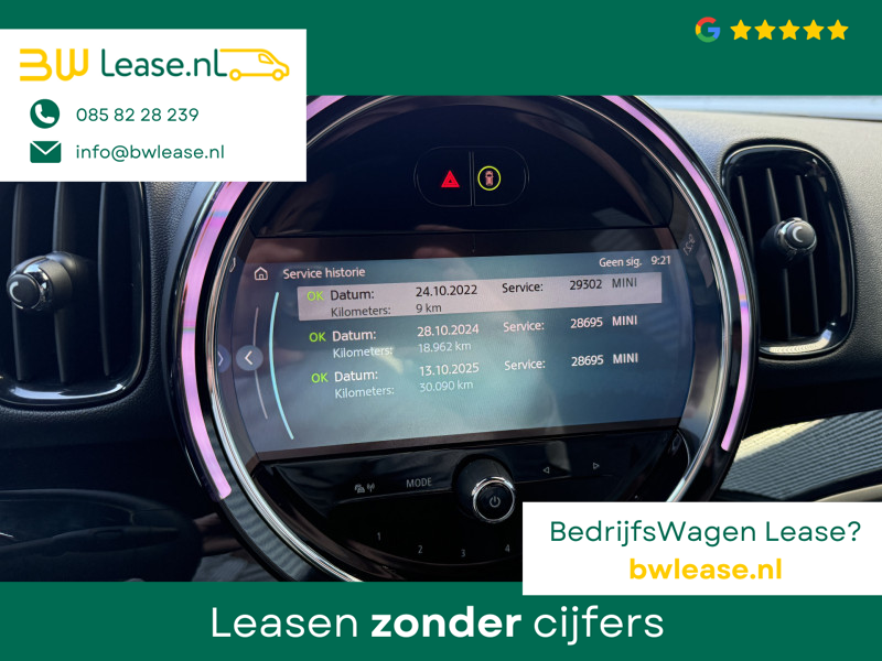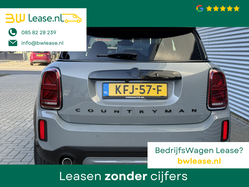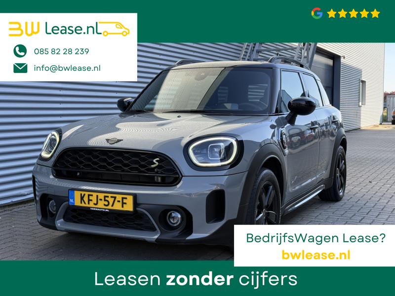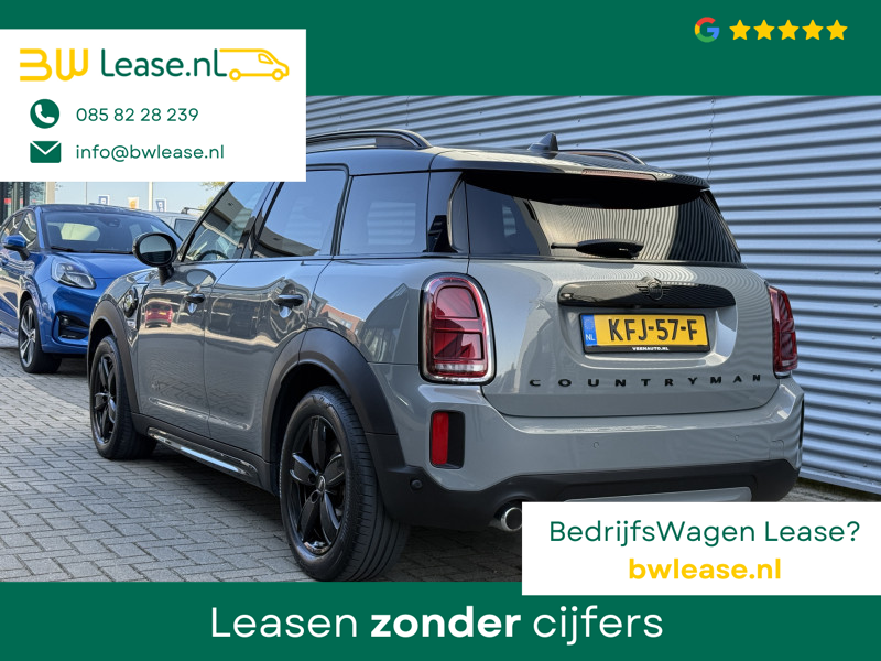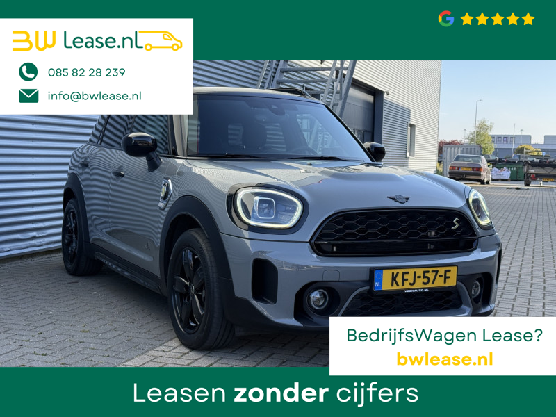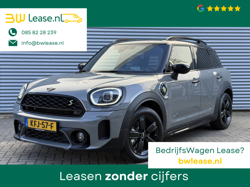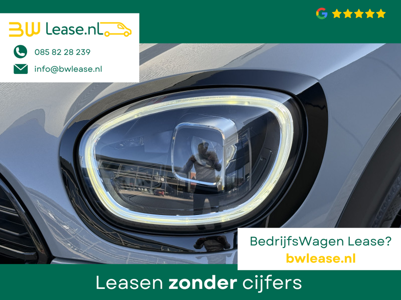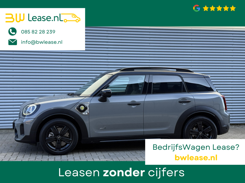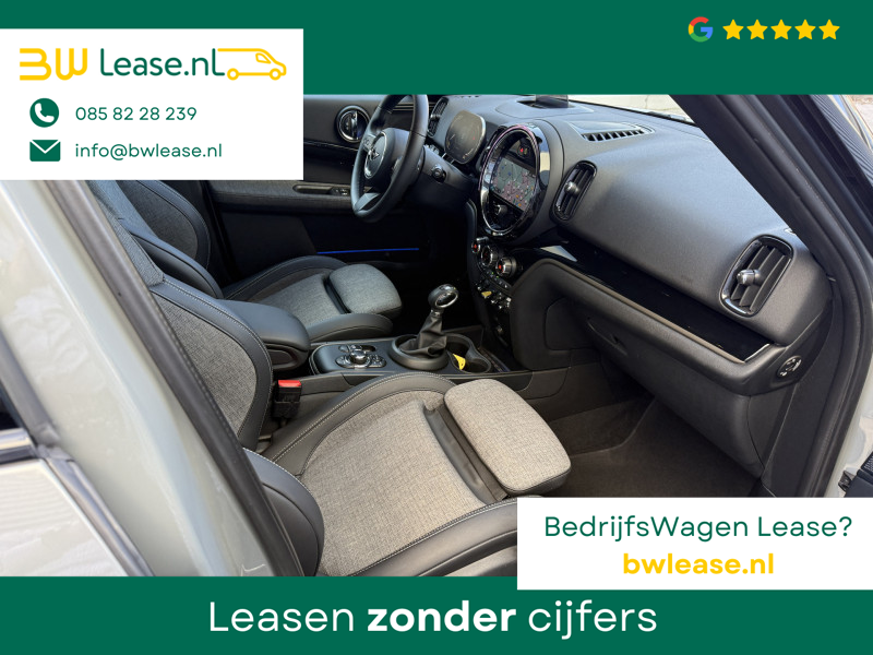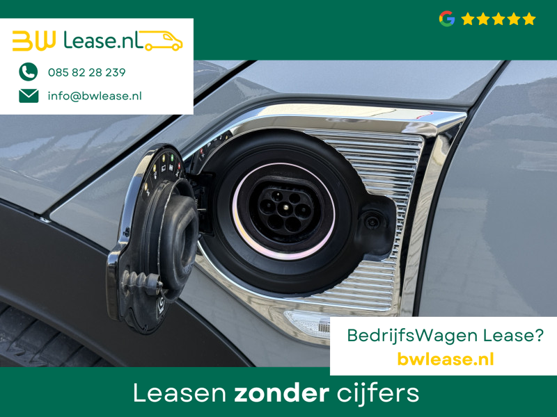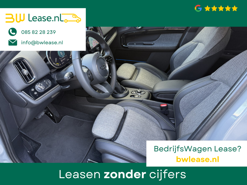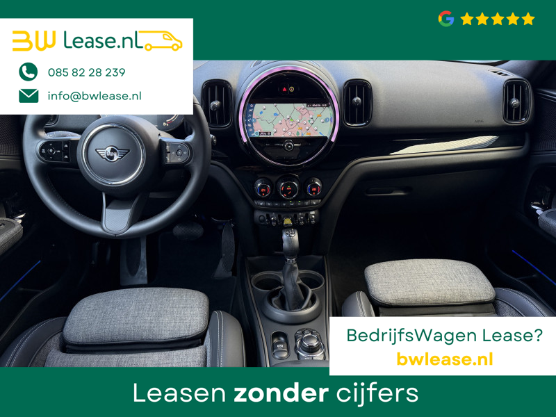 Schitterende Mini Countryman 2.0 Cooper SE ALL4 Plug in Hybrid in Moonwalk Grey metallic met hoogglans zwarte licht metalen velgen en Black Optic pakket. Deze Mini is bijzonder compleet uitgerust met onder andere de volgende opties: Elektrisch half lederen sport-comfort stoelen met geheugen, stoelverwarming, Apple Carplay, achteruitrijcamera, navigatie, virtuele cockpit, Head Up display, adaptieve cruise control, parkeersensoren, climate contol, LED sfeer interieur verlichting, etc..