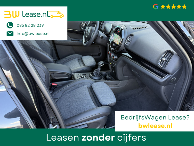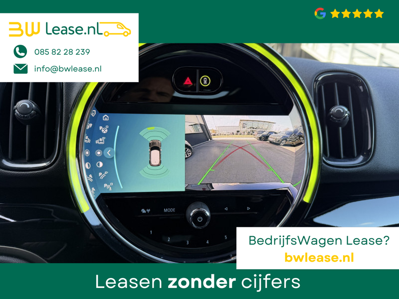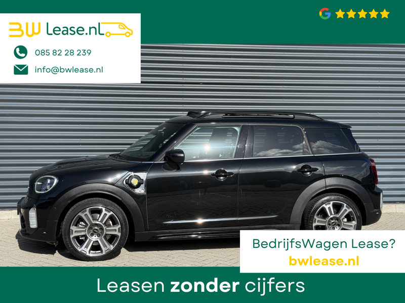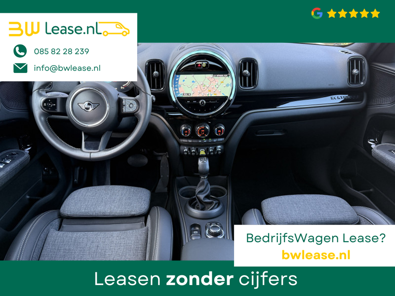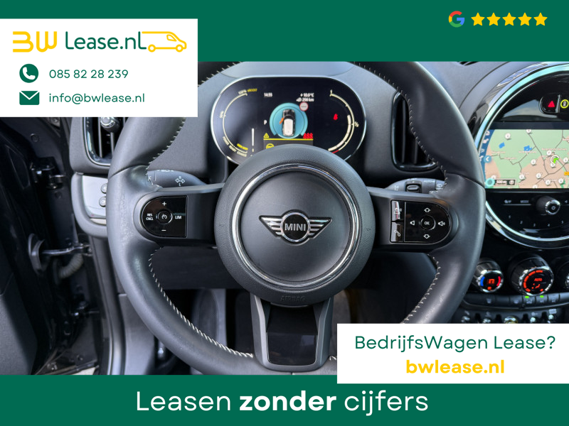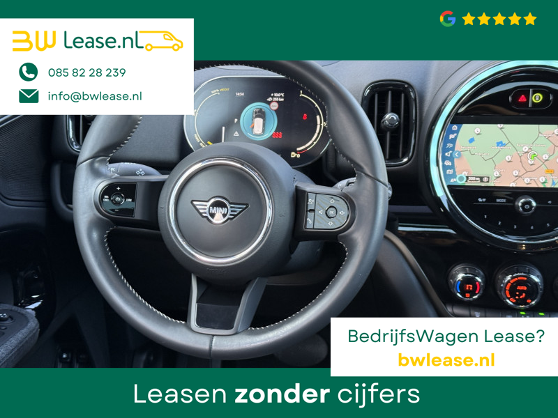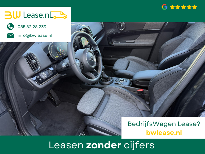 Schitterende Mini Countryman 2.0 Cooper SE ALL4 Plug in Hybrid Northwood in Midnight Black metallic met 19 inch licht metalen velgen en Black Optic pakket. Deze Mini is bijzonder compleet uitgerust met onder andere de volgende opties: Panorama dak, half lederen bekleding, Apple Carplay, achteruitrijcamera, navigatie, virtuele cockpit, Head Up display, cruise control, keyless entry, parkeersensoren voor + achter met parkeer assistent, etc..