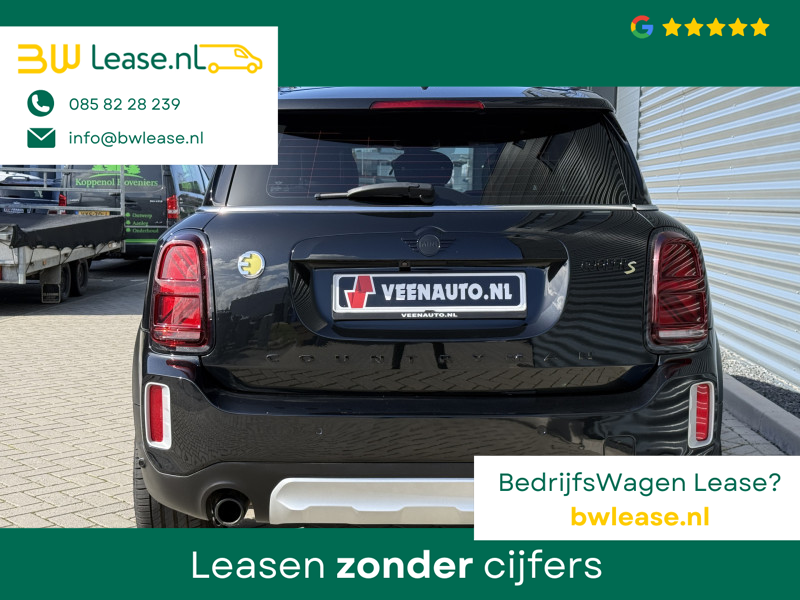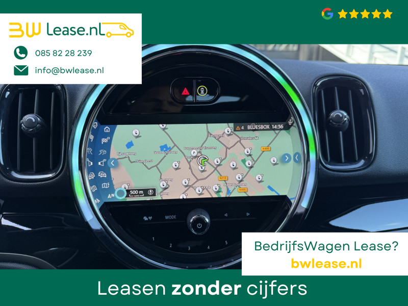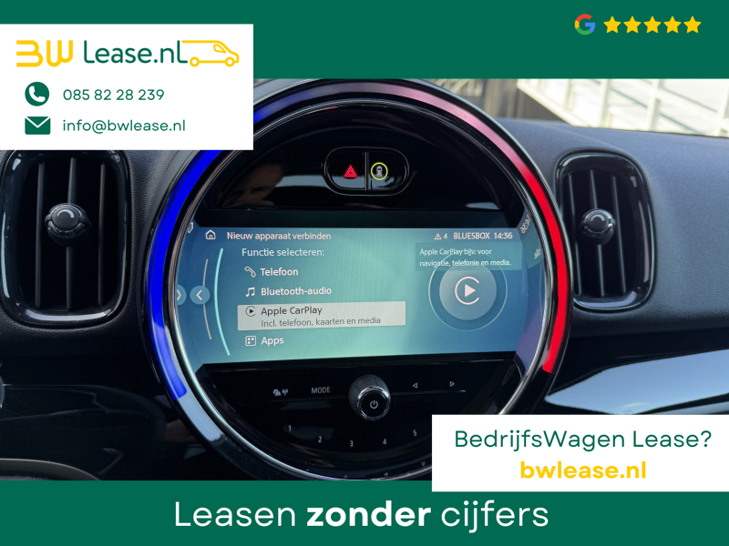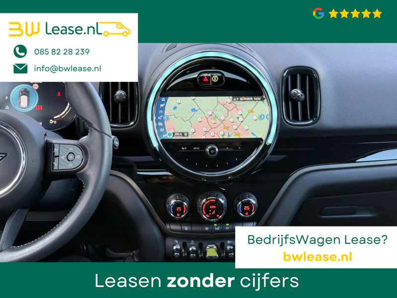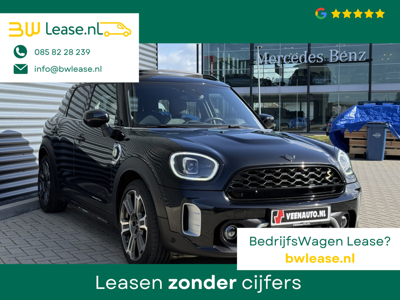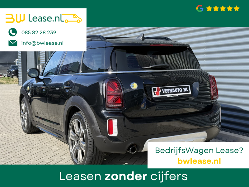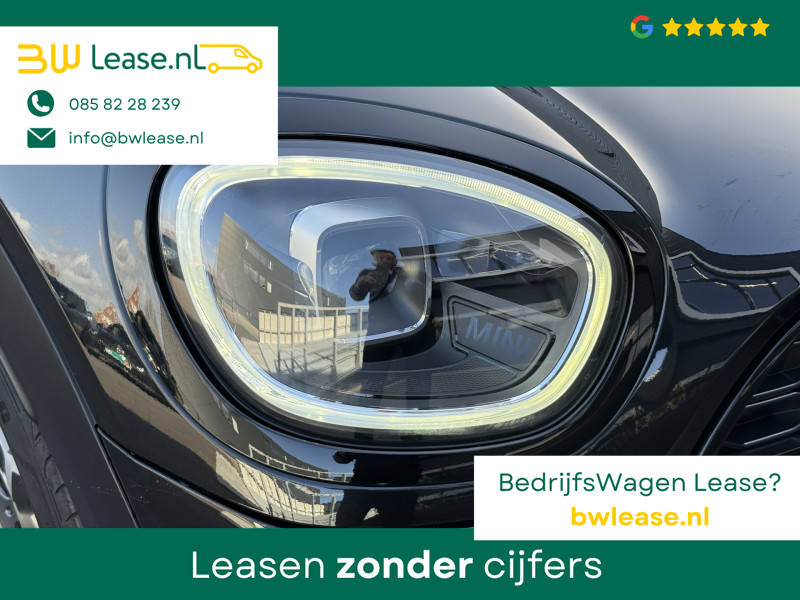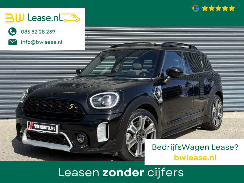 Schitterende Mini Countryman 2.0 Cooper SE ALL4 Plug in Hybrid Northwood in Midnight Black metallic met 19 inch licht metalen velgen en Black Optic pakket. Deze Mini is bijzonder compleet uitgerust met onder andere de volgende opties: Panorama dak, half lederen bekleding, Apple Carplay, achteruitrijcamera, navigatie, virtuele cockpit, Head Up display, cruise control, keyless entry, parkeersensoren voor + achter met parkeer assistent, etc..