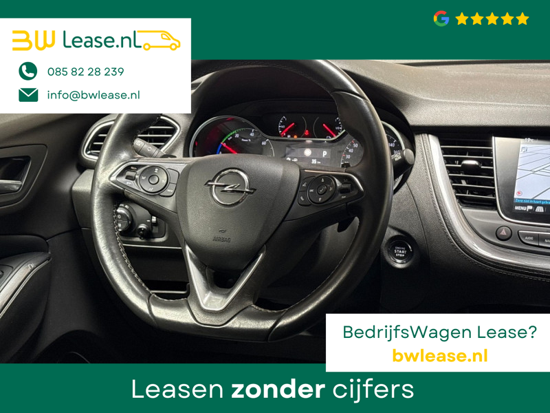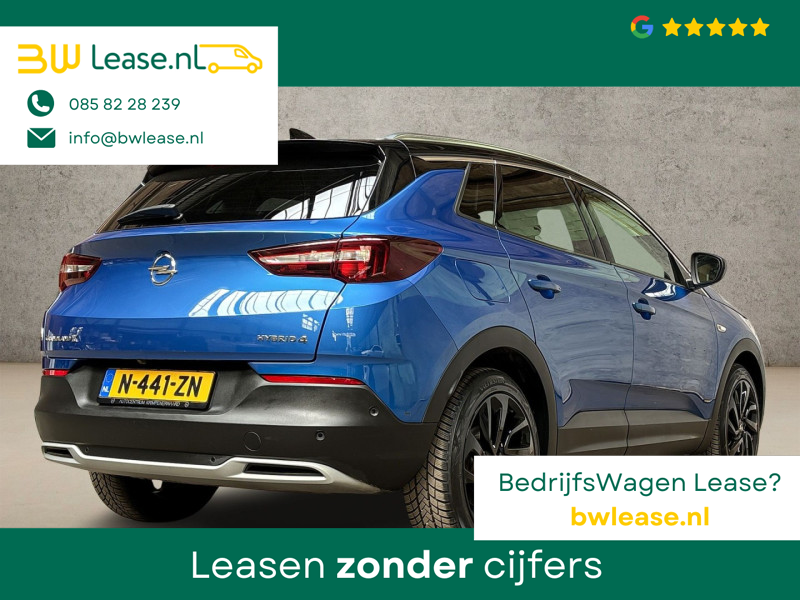Modern design en bijzondere techniek bepalen de kwaliteiten van de hybride Opel Grandland X. Op een dag rijden we allemaal elektrisch. Maar voor nu is de hybride oplossing van elektrisch en benzine ideaal! Zo ook bij deze Opel Grandland X. Van binnen ziet u een lederen interieur, een stijlvolle uitvoering. Zit u goed? De stoelen zijn eenvoudig instelbaar dankzij de elektrische bediening met geheugen. De achterklep opent automatisch met een druk op de knop. Handig als u met volle handen staat. De verwarmbare achterbank is een traktatie voor iedereen die achterin plaatsneemt. Tot de uitrusting van deze Opel behoren ook 19 inch lichtmetalen velgen, LED koplampen, dakspoiler, donker getint glas achter, in delen neerklapbare achterbank en LED-achterlichten.