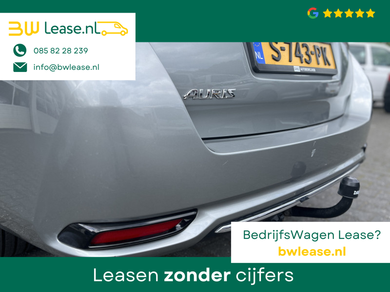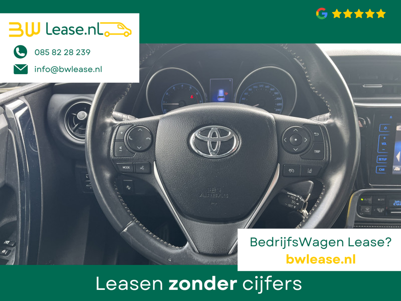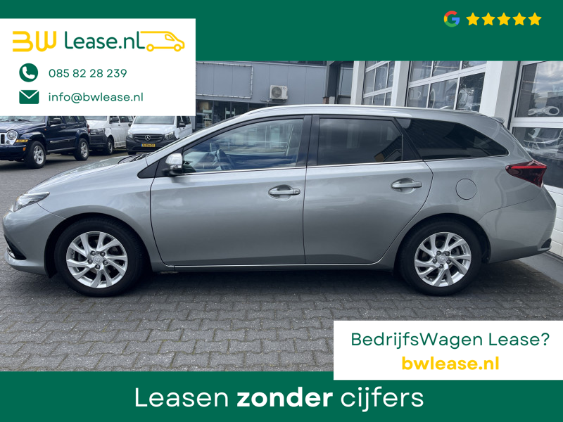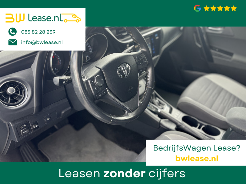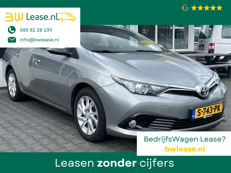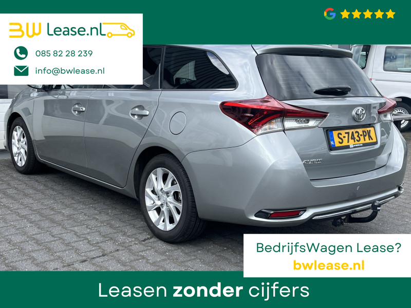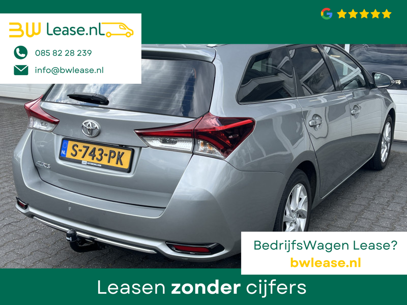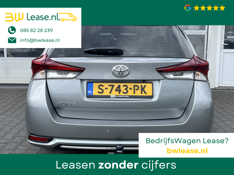 Toyota Auris Touring Sports 1.2T Energy Plus Automaat. O.a. voorzien van Climate control, Cruise control, Trekhaak 1.300 kg, Lederen stuurwiel, Lederen versnellingspook, Lichtmetalen velgen 16″, Mistlampen voor, Multimedia-voorbereiding, Navigatiesysteem full map, Achteruitrijcamera, etc.