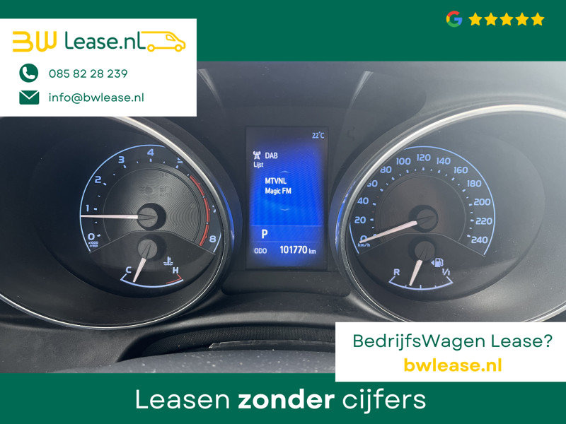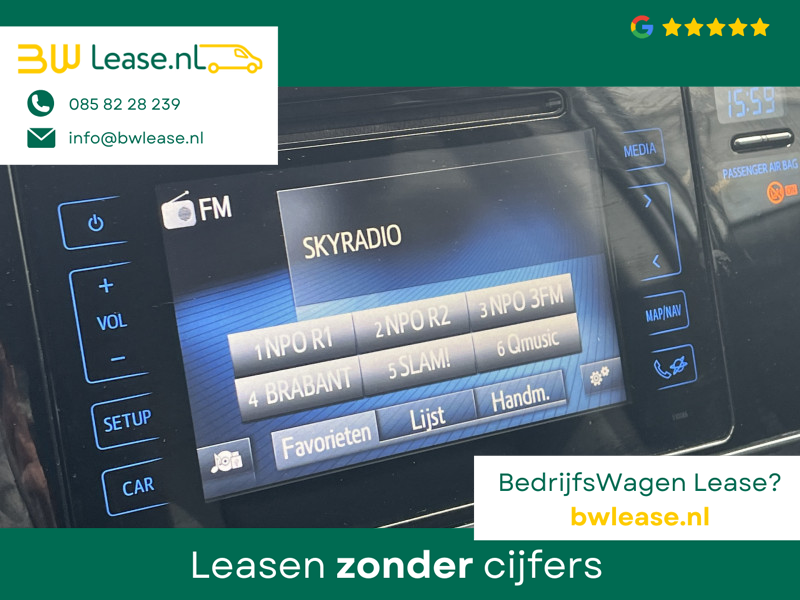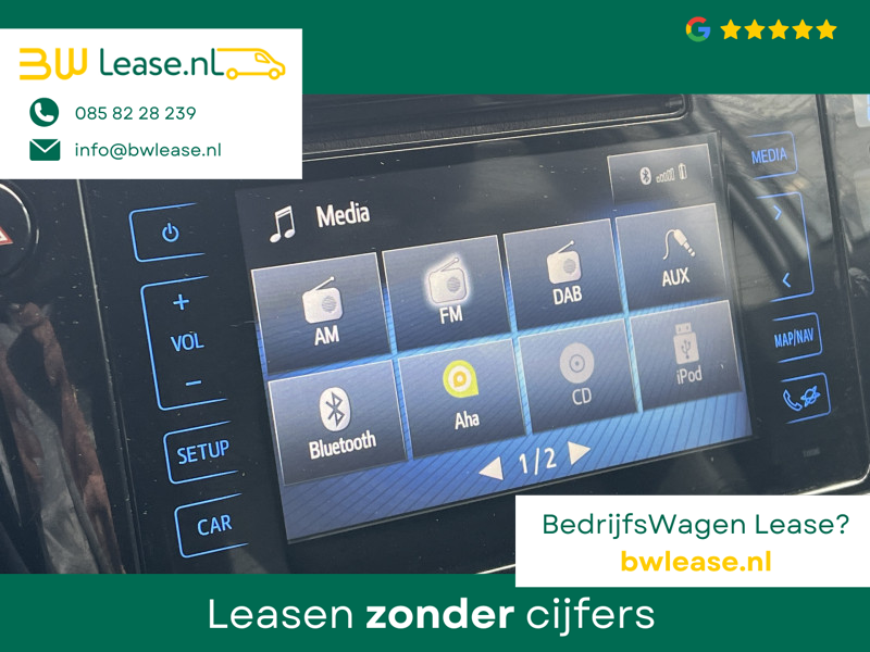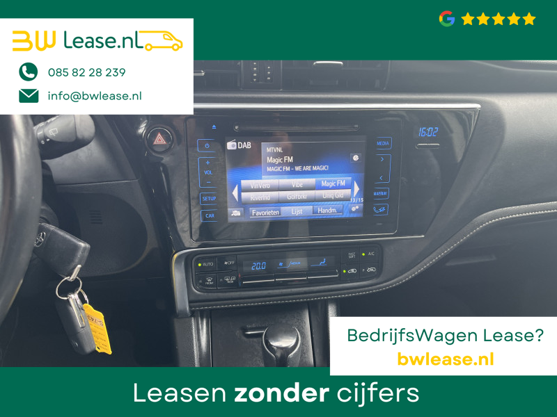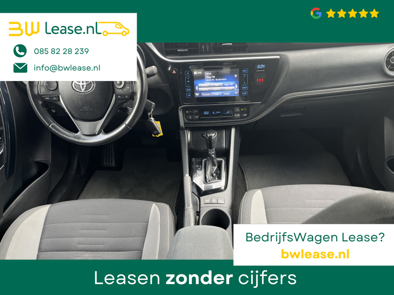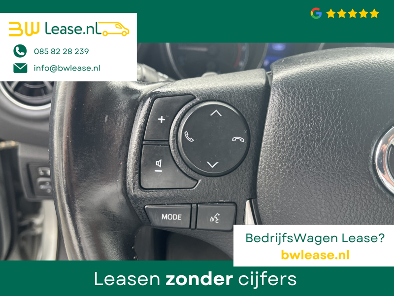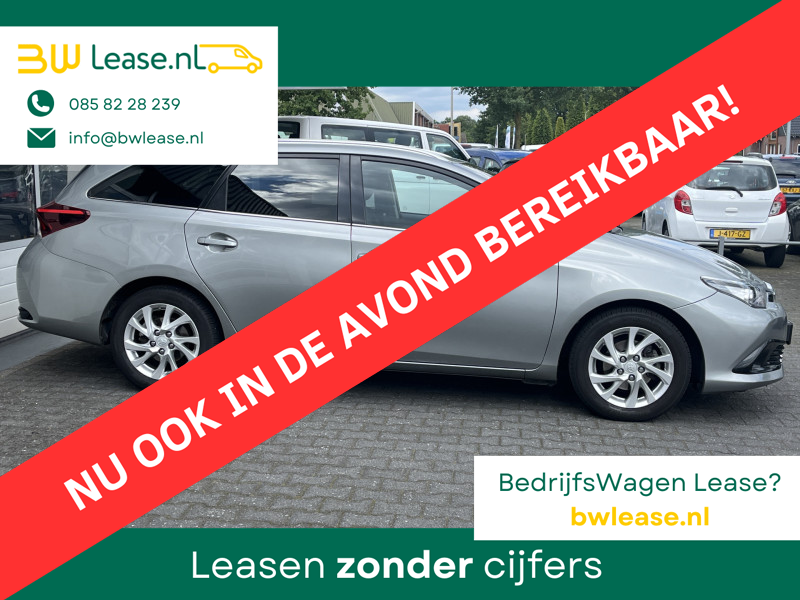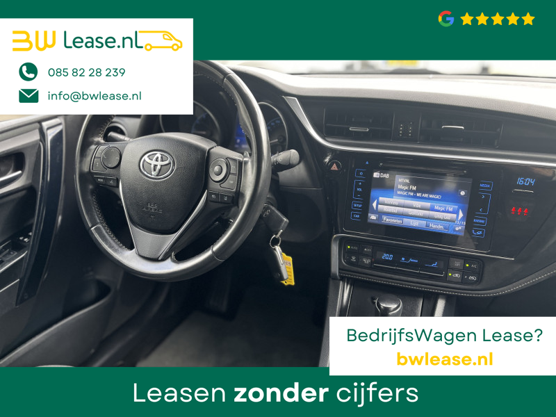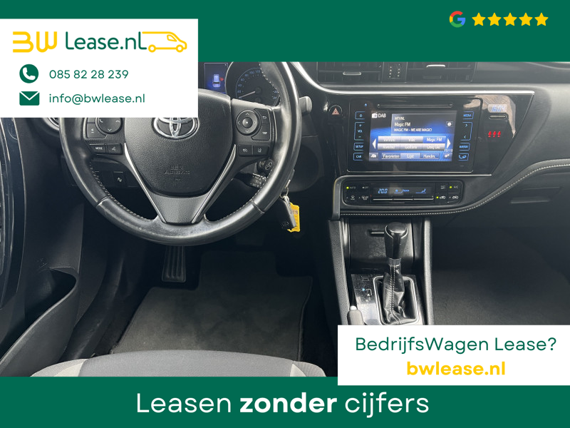 Toyota Auris Touring Sports 1.2T Energy Plus Automaat. O.a. voorzien van Climate control, Cruise control, Trekhaak 1.300 kg, Lederen stuurwiel, Lederen versnellingspook, Lichtmetalen velgen 16″, Mistlampen voor, Multimedia-voorbereiding, Navigatiesysteem full map, Achteruitrijcamera, etc.