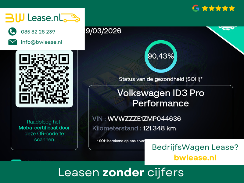 Volkswagen-rijders waarderen hun merk om de degelijkheid van de techniek en de uitmuntende rijkwaliteiten. Een Volkswagen is bovendien comfortabel en ruim, omdat hij altijd is ontworpen met de inzittenden als uitgangspunt. Een ID.3 zoals deze bijvoorbeeld, biedt ruim comfort voor vijf inzittenden. U kunt ervoor kiezen vanwege het milieu. Maar de elektromotor biedt ook power en prestaties! Een belangrijke eigenschap van iedere Volkswagen is zijn duurzaamheid. Dat ziet u ook aan deze ID.3. De krachtige motor geeft deze Volkswagen uitstekende prestaties. Ervaar de weldadige warmte van de inschakelbare stoelverwarming. De uitmonstering van deze auto wordt gecompleteerd door onder meer LED koplampen, neerklapbare achterbank, LED-achterlichten en snelheidsafhankelijke stuurbekrachtiging.