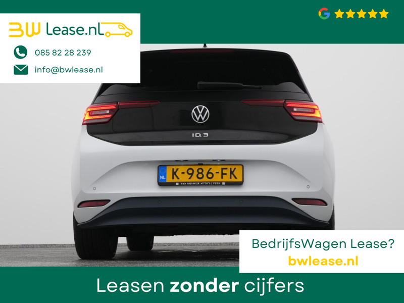 Nooit meer problemen bij achteruitrijden of inparkeren. De achteruitrijcamera houdt alles in de gaten! Met adaptive cruise control houdt de auto zelfstandig afstand tot uw voorligger. Een veiligheidsverhogende optie waarmee u comfortabel onderweg bent. Net als een smartphone of een slimme speaker kunt u deze auto bedienen met stemcommando’s. De kortste weg, de zuinigste weg, de snelste weg… elke weg is te vinden met het navigatiesysteem. Aan boord van deze Volkswagen ID.3 is een achteropkomend verkeer waarschuwing voor extra veiligheid. U bent in deze Volkswagen ook voorzien van automatische airconditioning, DAB ontvangst, regensensor, keyless entry, automatisch dimmende binnenspiegel en lederen stuur.
