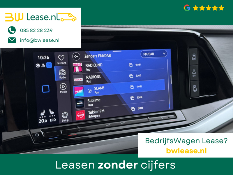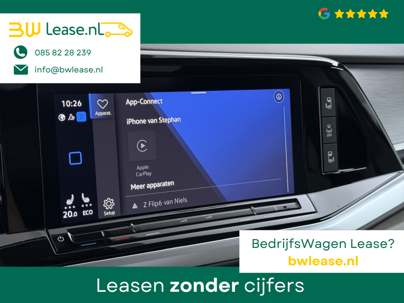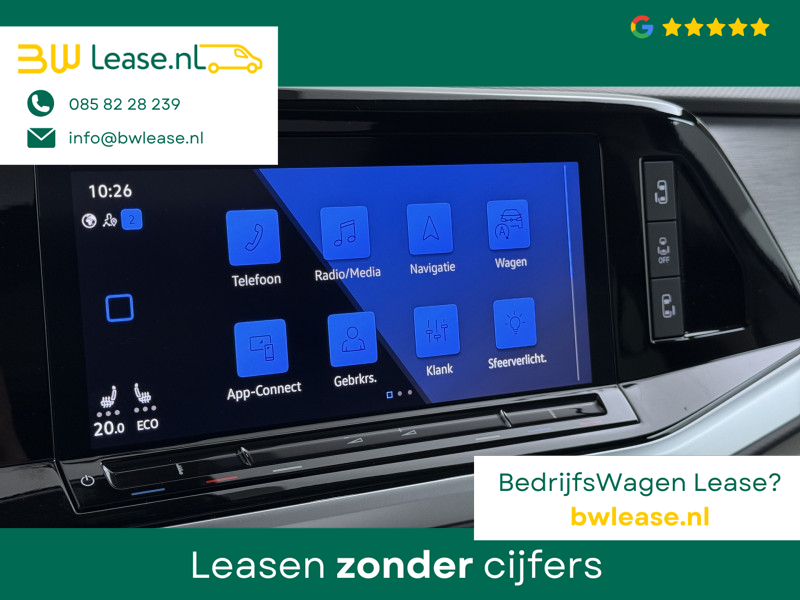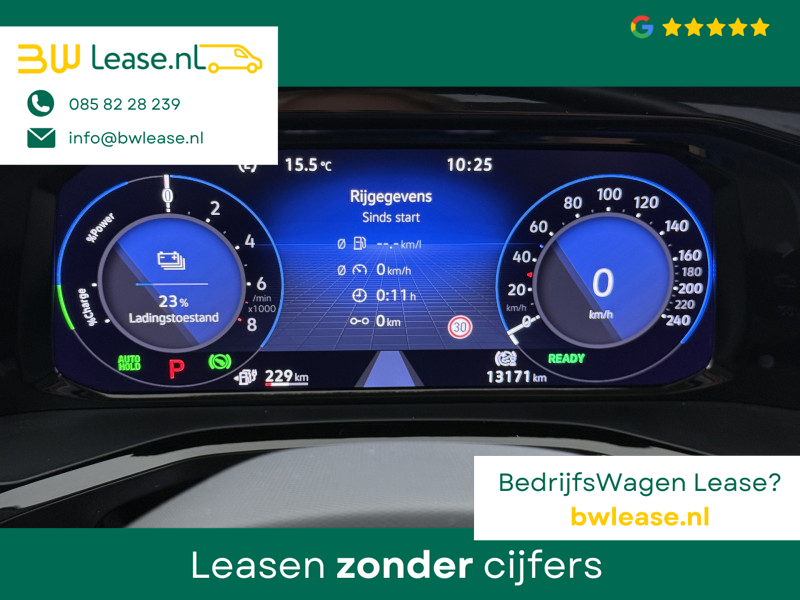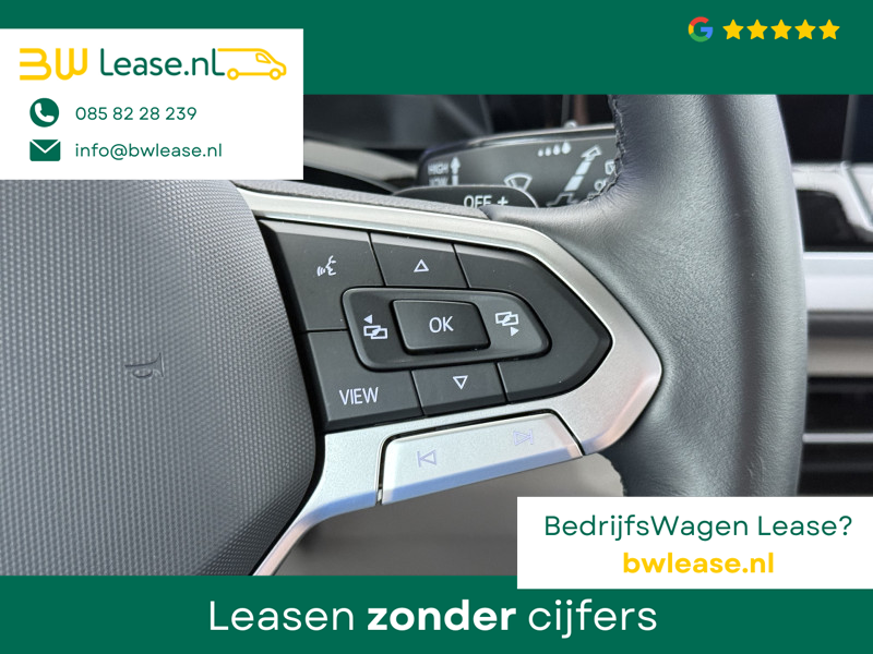Duik in de digitale wereld van mobiliteit waar alles wat u nodig heeft voor een comfortabele en veilige rit, wordt geprojecteerd op het digitale dashboard. Geen nekkramp of spiegelwerk meer bij het achteruitrijden: de achteruitrijcamera kijkt en ziet alles! De elektrisch inklapbare trekhaak blijft mooi uit het zicht als u hem niet gebruikt. Als u ‘m vraagt ‘hoe gaat het?’ geeft deze auto zelf het antwoord. Via de app op uw smartphone. U checkt de meters waar u maar wilt, of activeert diverse functies alvast. Terwijl het navigatiesysteem de ideale route voor u uitstippelt, geniet u van de kwaliteit van het audio-installatiesysteem met DAB-ontvangst. De bediening is bovendien gemakkelijk via knoppen op het stuur of via spraak. U bent in deze Volkswagen ook voorzien van automatische airconditioning, schakelpaddles aan het stuur, draadloos opladen, regensensor, cruise control met snelheidsbegrenzer en keyless entry.