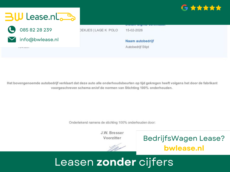 Inbegrepen afleverpakket: Huisgarantie: De zekerheden van het Garantiebewijs: zekerheid met betrekking tot garantie en geschiedenis van de kilometerstand van de auto (NAP) 3 maanden garantie op onderhoud- en reparatiewerkzaamheden 12 maanden garantie op verborgen gebreken van gekochte gebruikte auto’s en onderdelen/toebehoren duidelijke en betrouwbare voorwaarden getoetst door Consumentenbond onafhankelijke bemiddeling bij een geschil; geschillenbeslechting bij de Stichting Geschillencommissie Aan deze garantiebeschrijving kunnen geen rechten worden ontleend. De garantie voor deze auto kan worden gewijzigd. Voor de meest recente garantie voor deze auto raden wij u aan om contact op te nemen met de dealer.