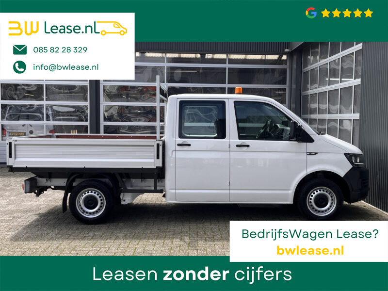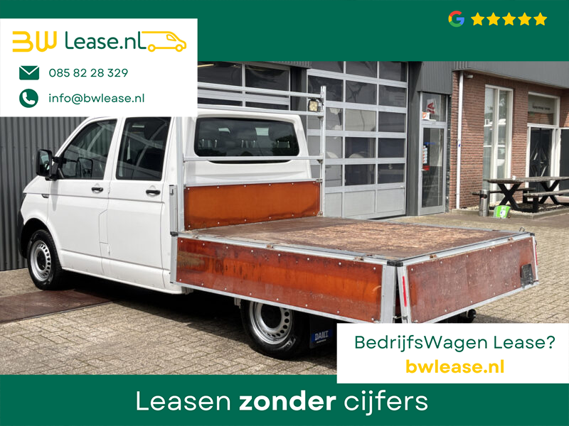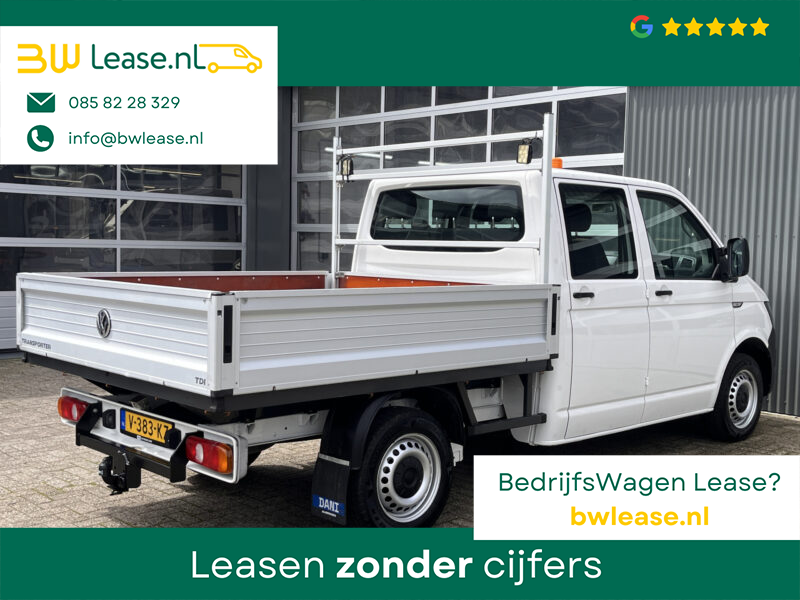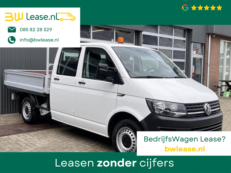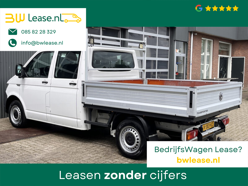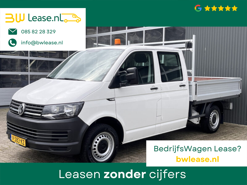Een zeer nette Volkswagen Transporter 2.0 TDI 102pk Euro 6 Pick up Dubbele cabine open laadbak Pick-up met Airco Telefoonverbinding trekhaak 2200 kg 1e eigenaar 6-Persoons Werkverlichting P-up Doka Pritsche Ahk 2200kg