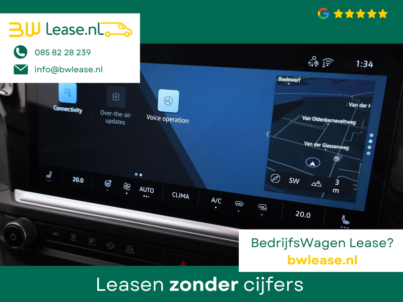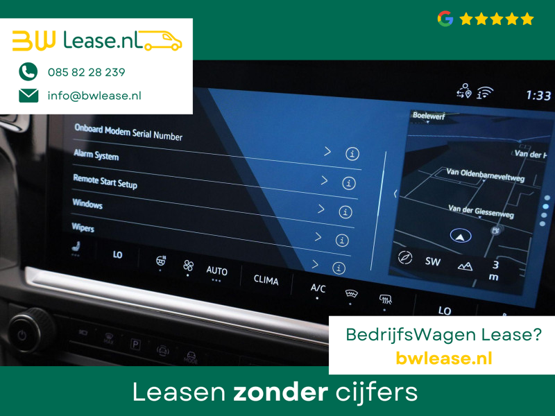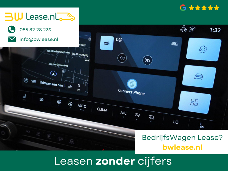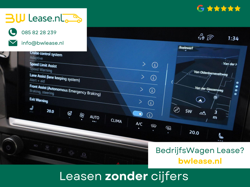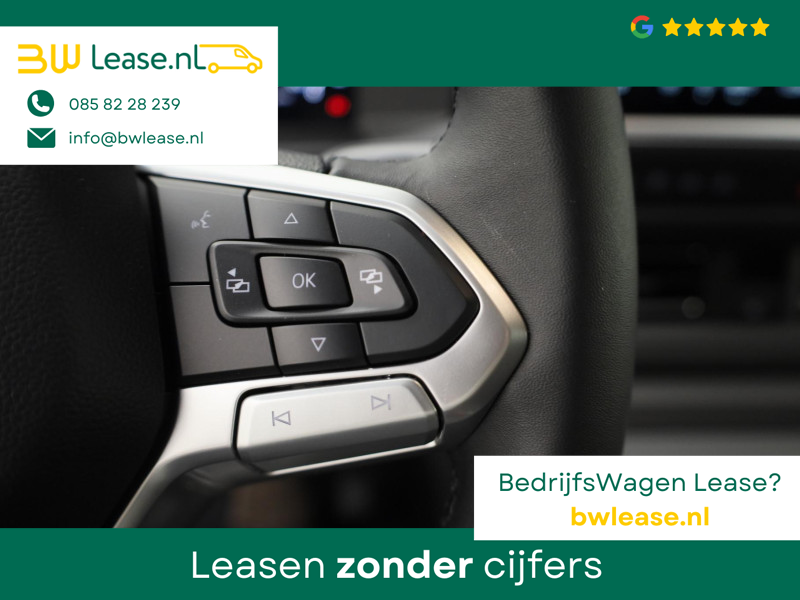 Snelheid, brandstofinfo, noem maar op. Het digitale dashboard houdt u permanent op de hoogte. Goed en overzichtelijk. Met de 360 graden camera op deze auto wordt parkeren in smalle parkeerplekken een makkie dankzij het optimale zicht dat het apparaat levert. Adaptive cruise control is een comfortabele en veilige optie. Het systeem reguleert de snelheid en houdt automatisch afstand tot uw voorligger. De ingebouwde Connected Services vertellen u via de app alles over de status van de auto. Locatie, onderhoudsstatus, brandstofpeil en nog veel meer! Waarheen gaat de reis? Het navigatiesysteem brengt u trefzeker ter plekke! De Volkswagen Bedrijfswagens is standaard voorzien van: electronic climate control, draadloos opladen, DAB ontvangst en keyless entry.