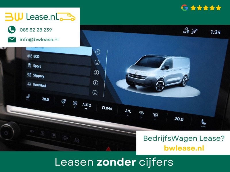 Deze Volkswagen Bedrijfswagens e-Transporter is innovatie op zijn best. Hij is ontworpen als een unieke combinatie van rijplezier en zorg voor het milieu. Milieuvriendelijk, stil en uitstekende rijprestaties: dat zijn de voordelen van de elektromotor. U hoeft niet langer te wachten, deze splinternieuwe auto is nu direct beschikbaar ’s Winters op pad gaan kan een behoorlijke uitdaging zijn. Daarom is deze Volkswagen Bedrijfswagens e-Transporter voorzien van weldadige verwarmbare voorstoelen. De bagageruimte is toegankelijk via een comfortverhogende elektrische achterklep. Hoe koud het buiten ook is, het verwarmbare stuurwiel brengt uw handen en vingers snel weer op temperatuur. Voorzien van matrix LED-verlichting. De auto dimt precies dat deel van de lichtstraal waar de voor- of tegenliggers in rijden. De overige segmenten blijven aan en verlichten de weg. Achterportieren kunnen gemakkelijk beschadigd raken als ze bijvoorbeeld door de wind bij uitstappen openslaan. Dat zal niet gebeuren met de aanwezige schuifdeur achter. Ook is de auto voorzien van: 17 inch lichtmetalen velgen, twee achterdeuren, elektrisch inklapbare buitenspiegels, LED-achterlichten en verstelbare lendensteunen.